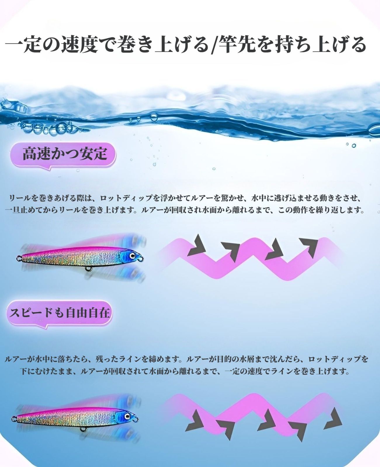 魚に見切られにくいスローなアクションで、メタルジグに反応しないターゲットにも効果的!