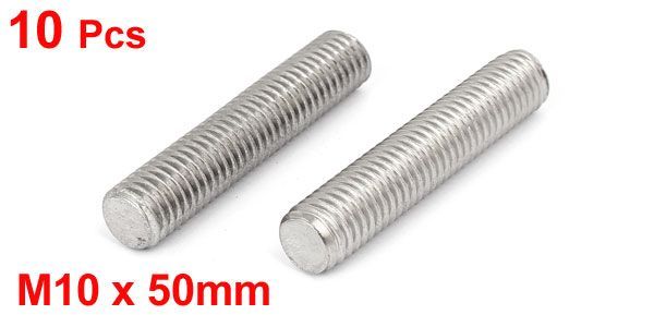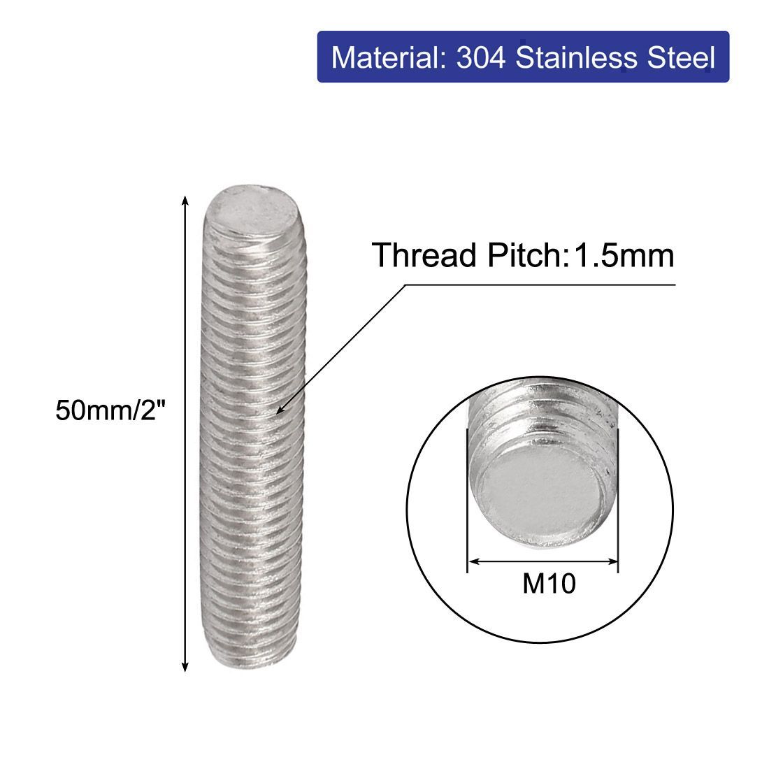 uxcell ねじロッド ネジ棒 フルネジ メタル 304ステンレス鋼 M10 x 50mm シルバートーン 10本入り