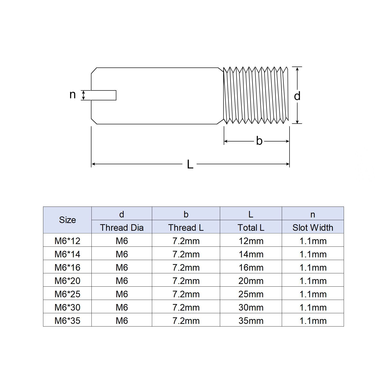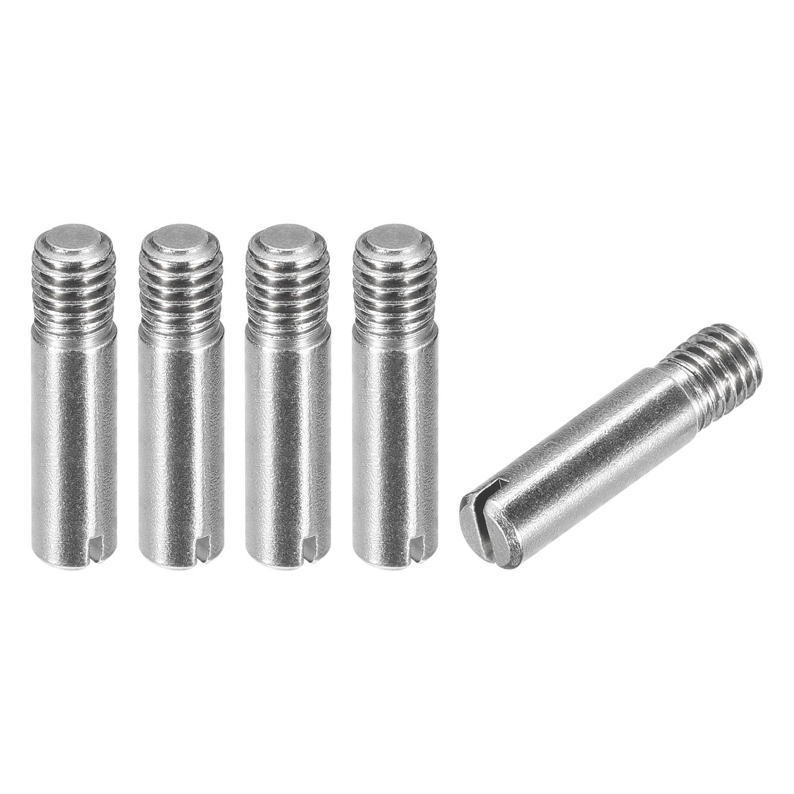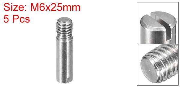 【仕様】製品名:ネジ式棚ダボ。サイズ:M6×25mm(スレッド径×総長)。スレッド長:7.2mm。スロット幅:1.1mm。パッケージ内容:ダボピン ×5個。