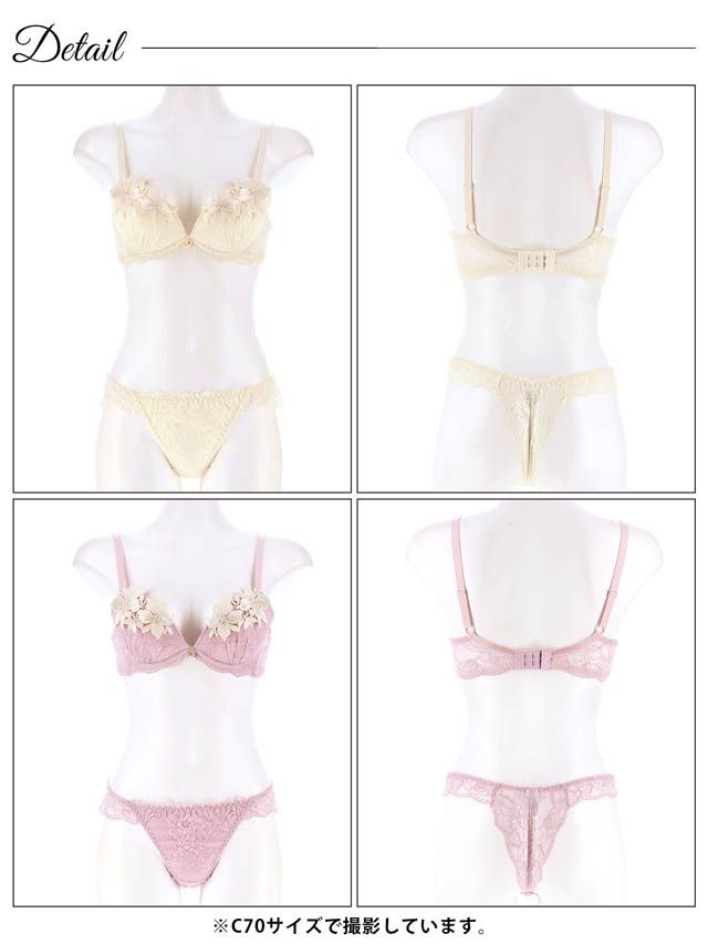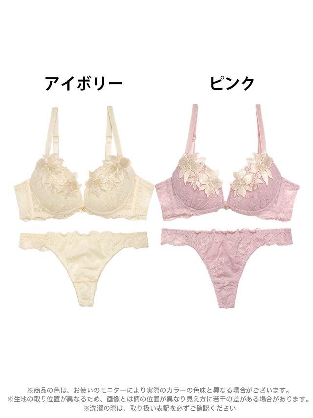 ヴィーナスケミカルフラワー育乳脇高ブラジャー&バック透けTバックショーツ