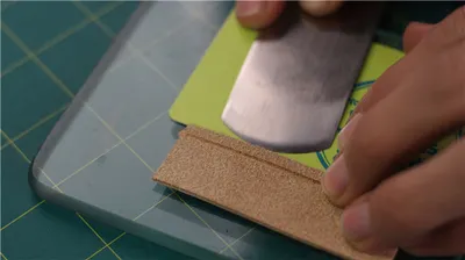 革包丁をプレートにセットし、滑らす様に使う道具です。