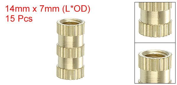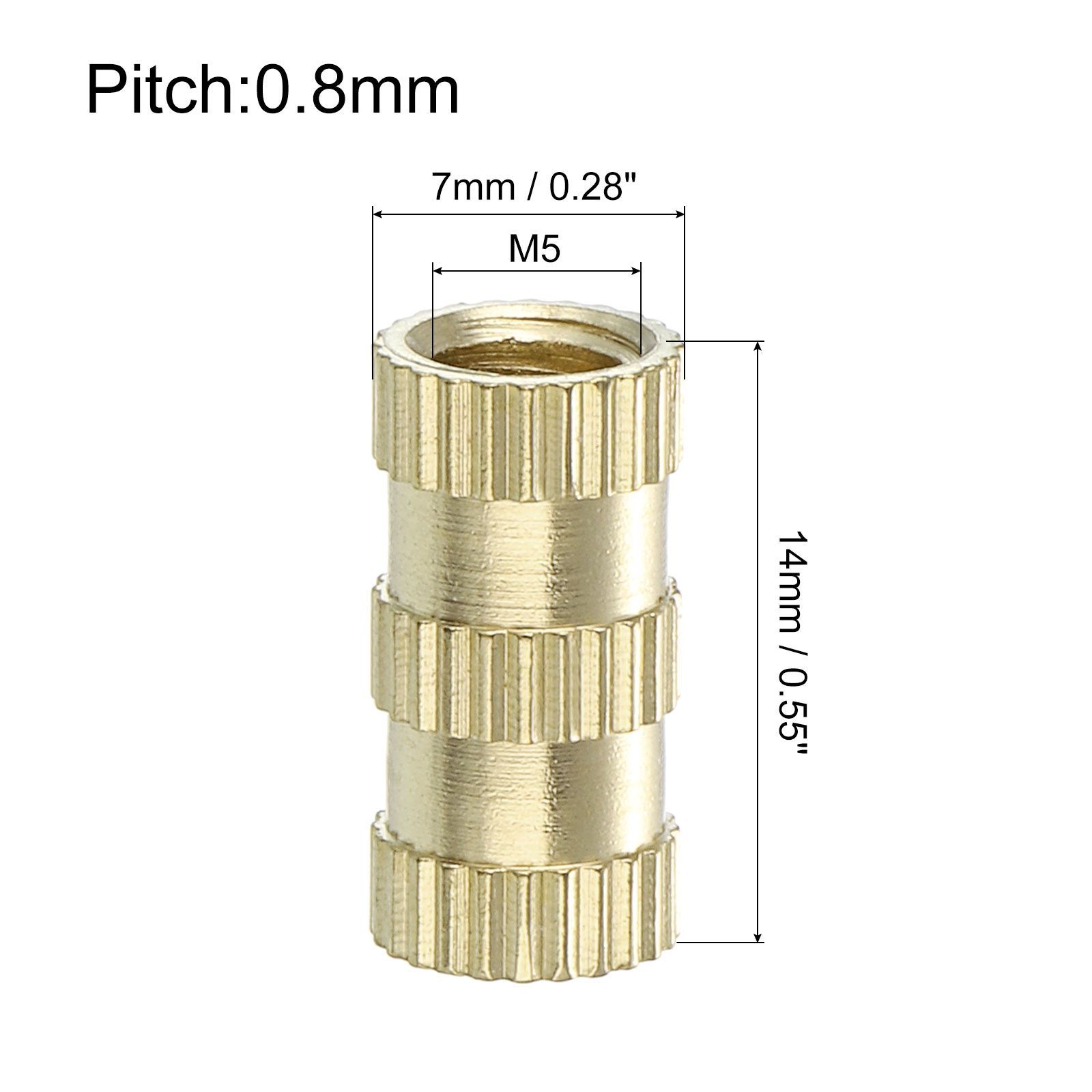 スレッドサイズ:M5x0.8mm、全長:14mm/0.55"、外径(+0.5/-0mm):7mm/0.28"、パッケージ内容:15個のノブ付きスレッドインサートナット