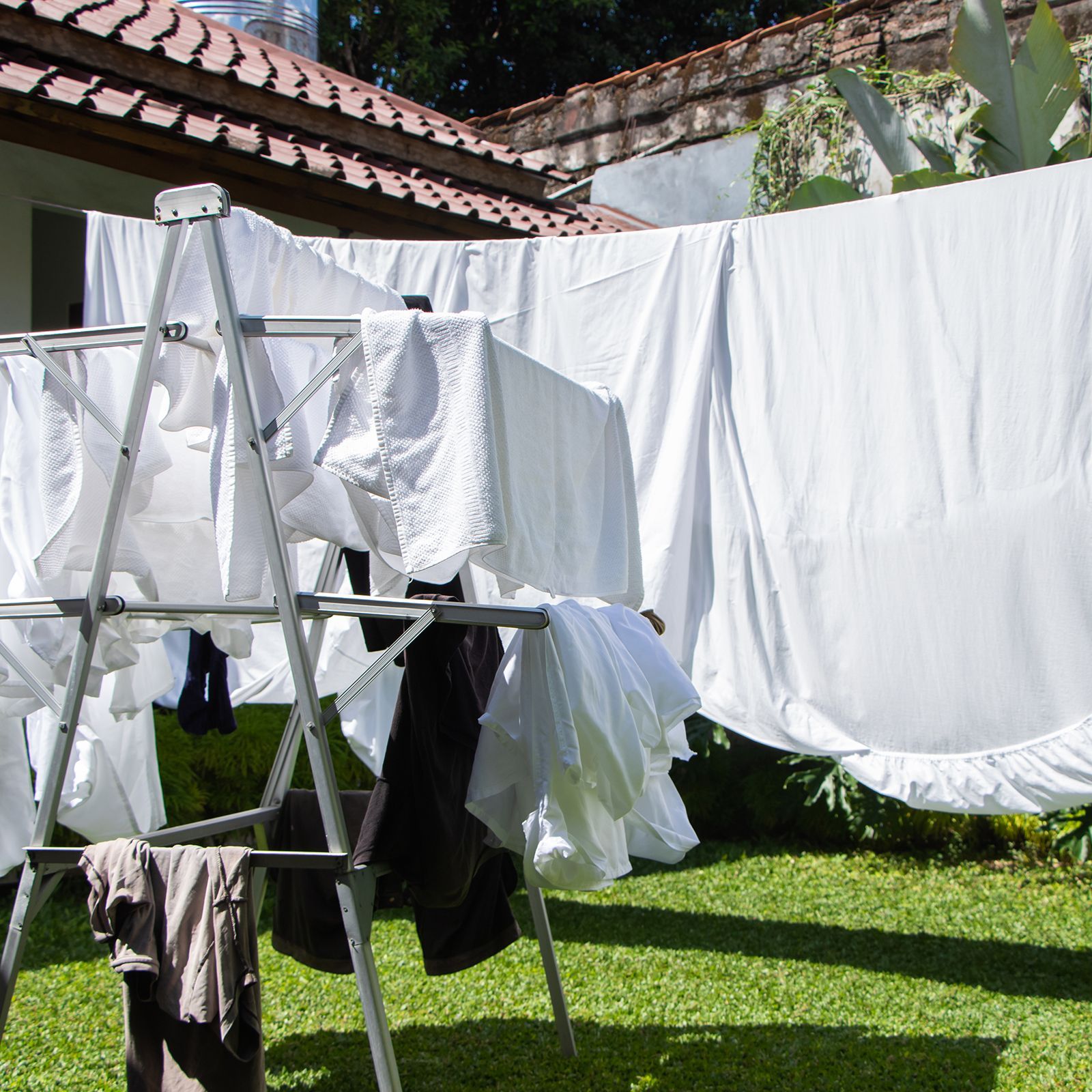簡単に固定 - ロープを乾かすものの重さに耐えられる場所に巻き付け、両側のフックで固定します。