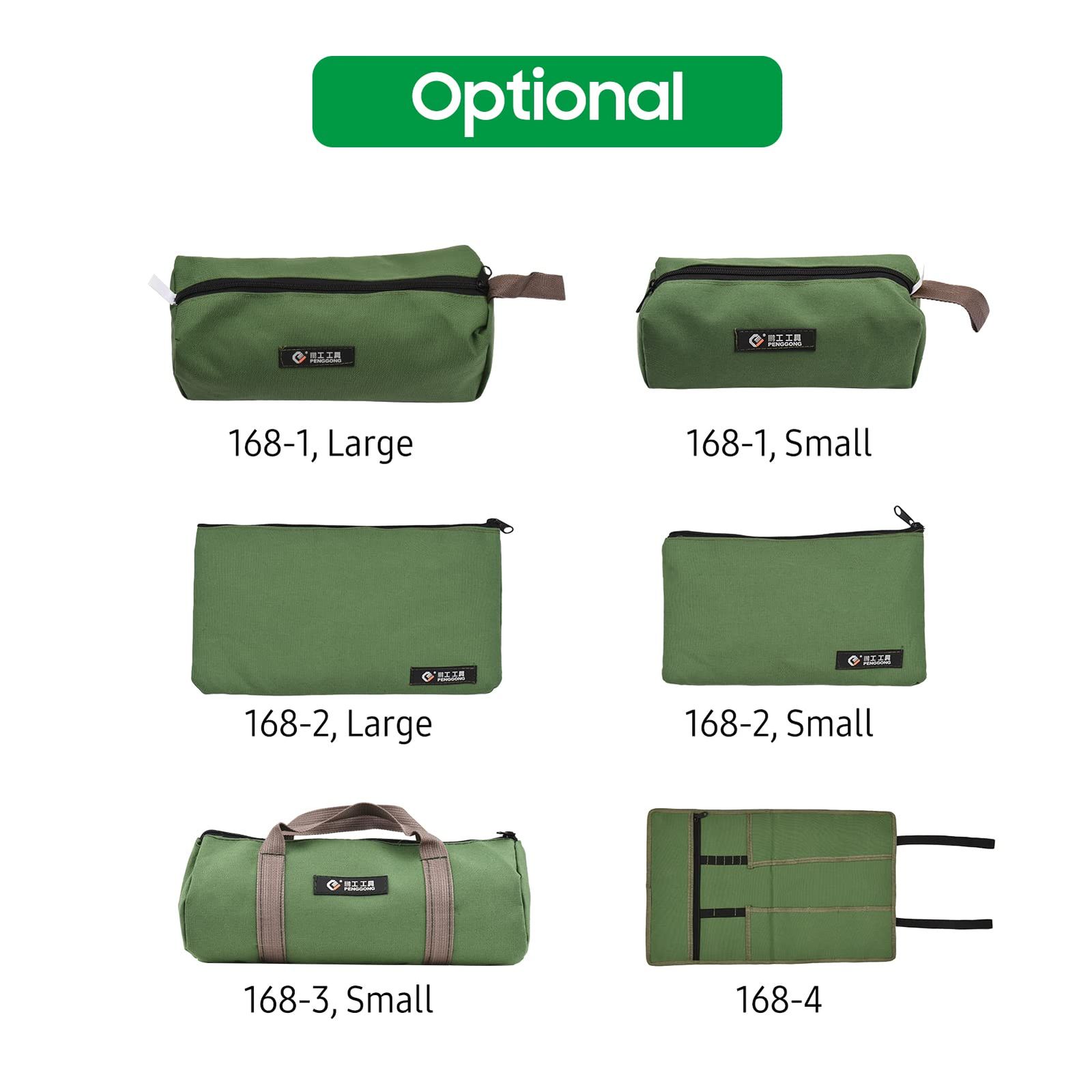 オプションの6タイプ:ハンドストラップ付きジッパーツールバッグ、SまたはL。ジッパーツールポーチ、SまたはL。ポータブルジッパーツールトート。持ち運びに便利なロールアップツールバッグ。