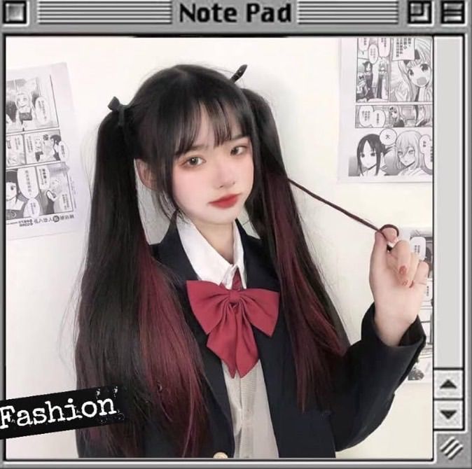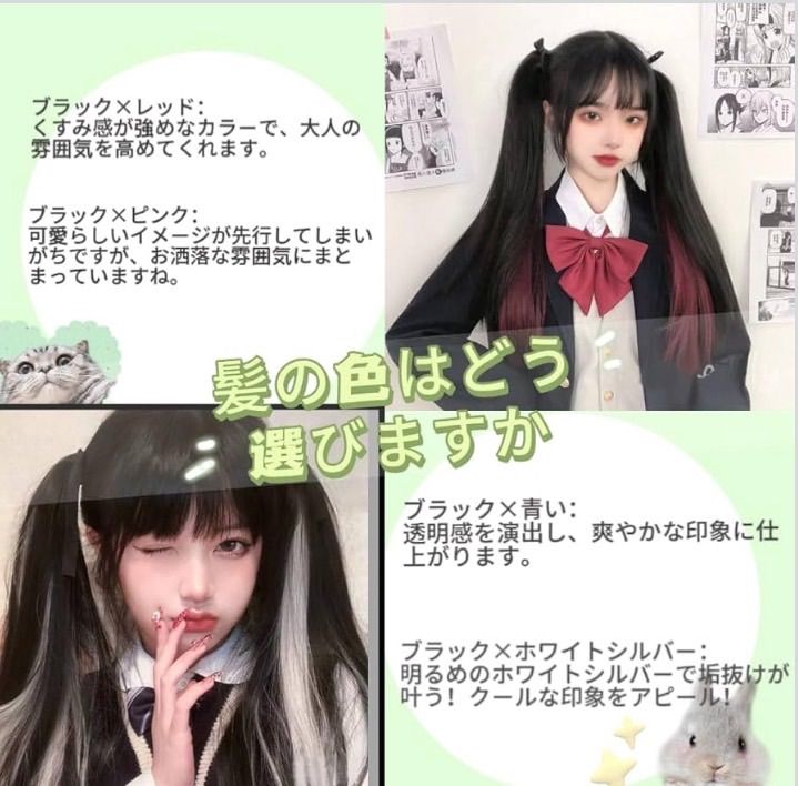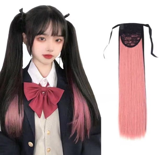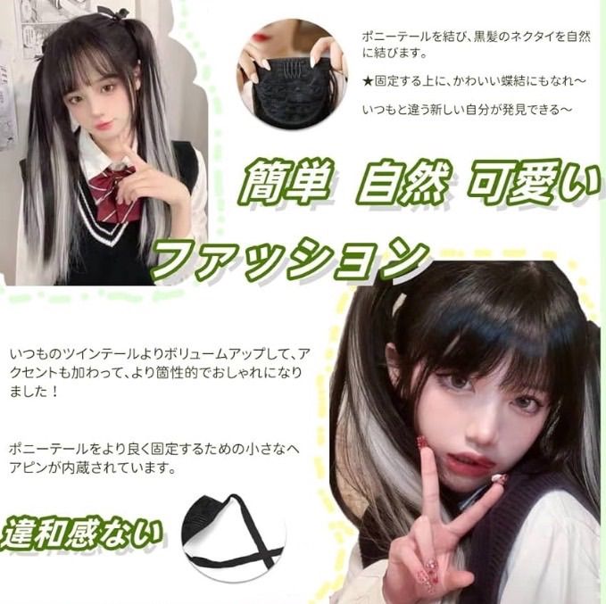 ウィッグ ポニーテール インナーカラー ツインテール 地雷系 原宿 エクステ ロング ストレート ストレート ポイントウィッグ 自然 簡単 ロリータ 2個セット ブラック×ピンク