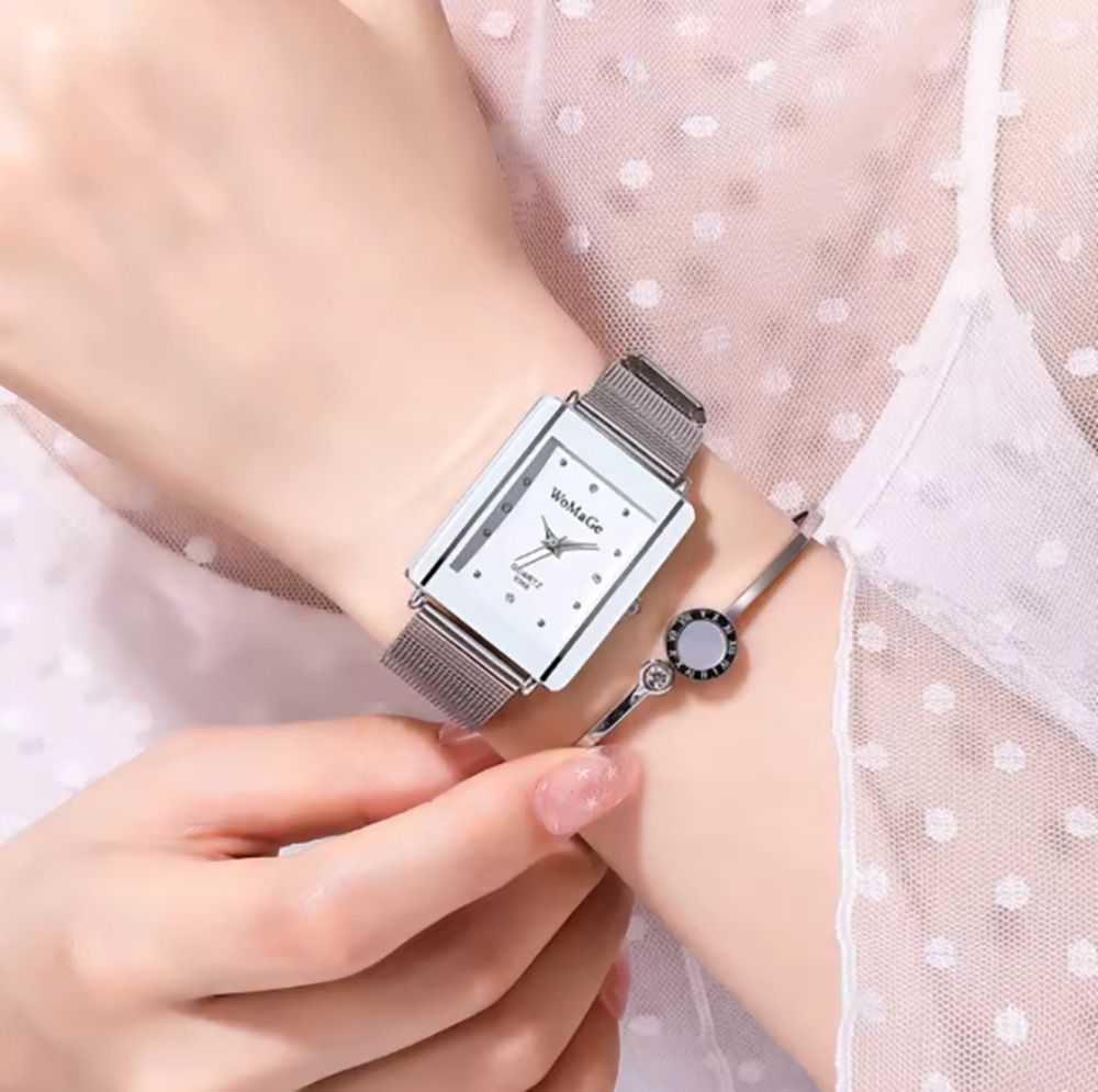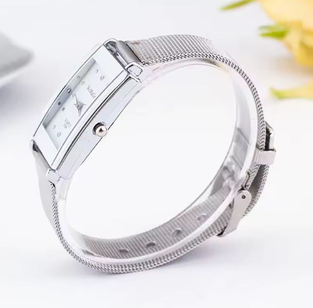 ホワイト クールでエレガントなレディース腕時計が登場!ビジネスやカジュアルシーンにもピッタリ♪スリムな長方形のケースに、華やかなラインストーンが輝きます。クォーツムーブメントで正確な時間を刻むことができ、使いやすさ抜群!バンドの長さは22.5cmで、バックルタイプのクラスプが付いています。ダイヤル直径34ミリメートルで、ガラス製のウィンドウ材質が使われています。バンド素材は合金で、バンド幅は17mm。ケースの厚さはわずか8mmと、軽くてスマート。防水機能はありませんが、お手頃な価格帯で手に入れやすいおしゃれアイテムです。モデル番号P140。大切な人へのプレゼントにもぴったり! レディース腕時計 クォーツ スリム 時計 ビジネス カジュアル 長方形 ファッション ラインストーン おしゃれ シンプル 高級感 プレゼント ギフト 女性用 お洒落 スタイリッシュ 白 ホワイト デザイン かわいい 軽量 ラグジュアリー