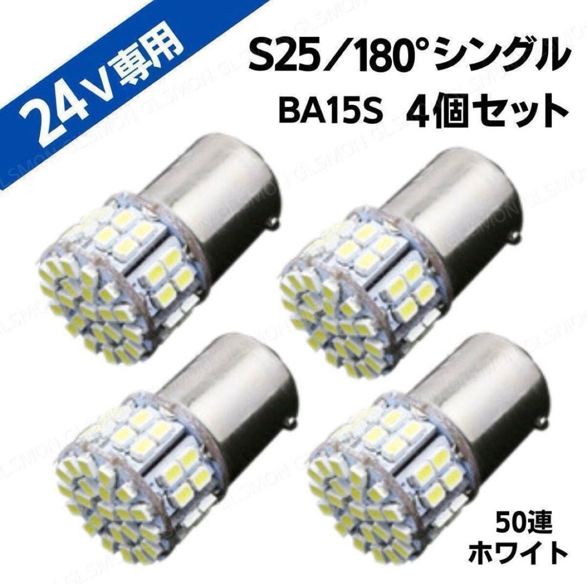 24V専用 LEDバルブ S25 シングル180° 平行ピン ホワイト 50連 4個セットです。