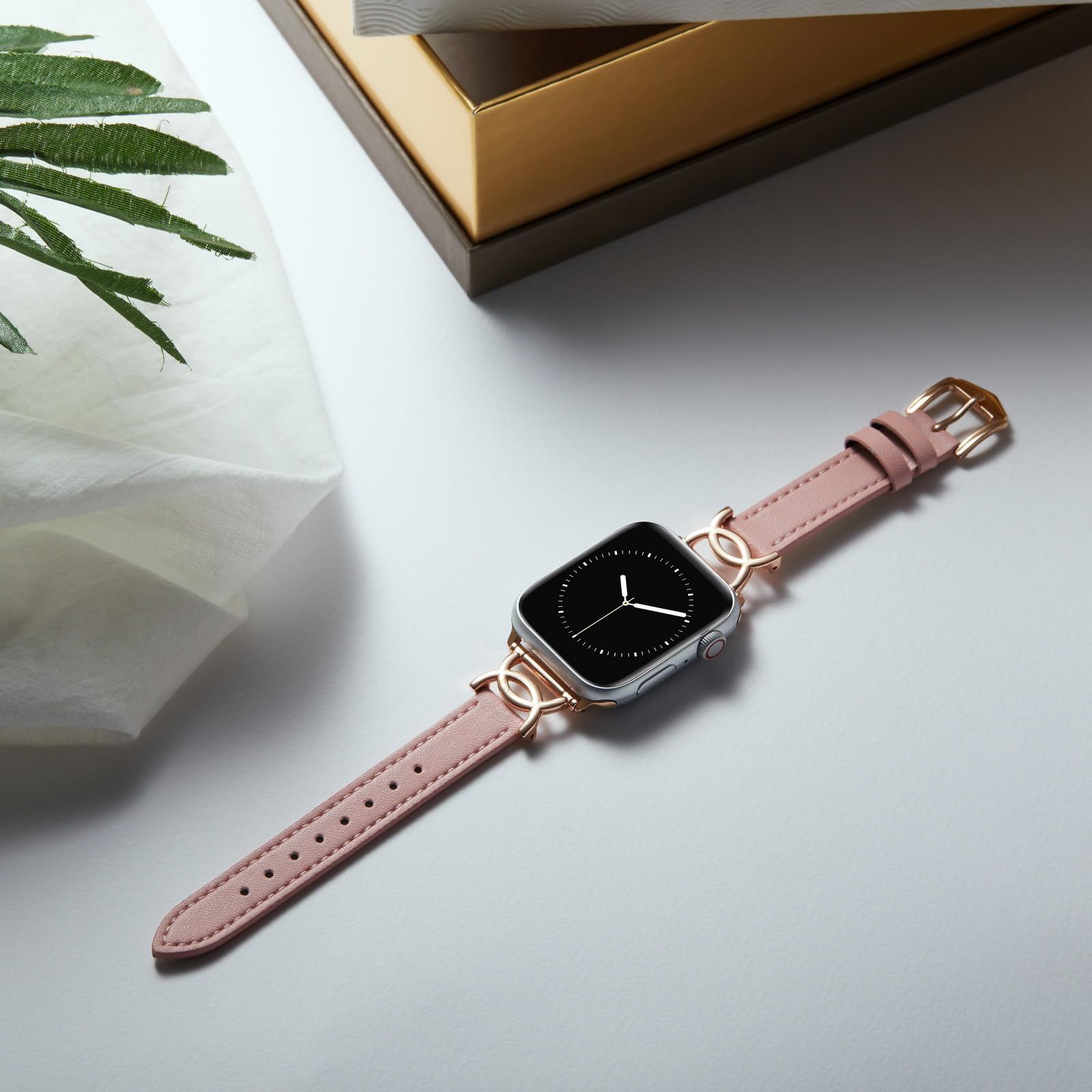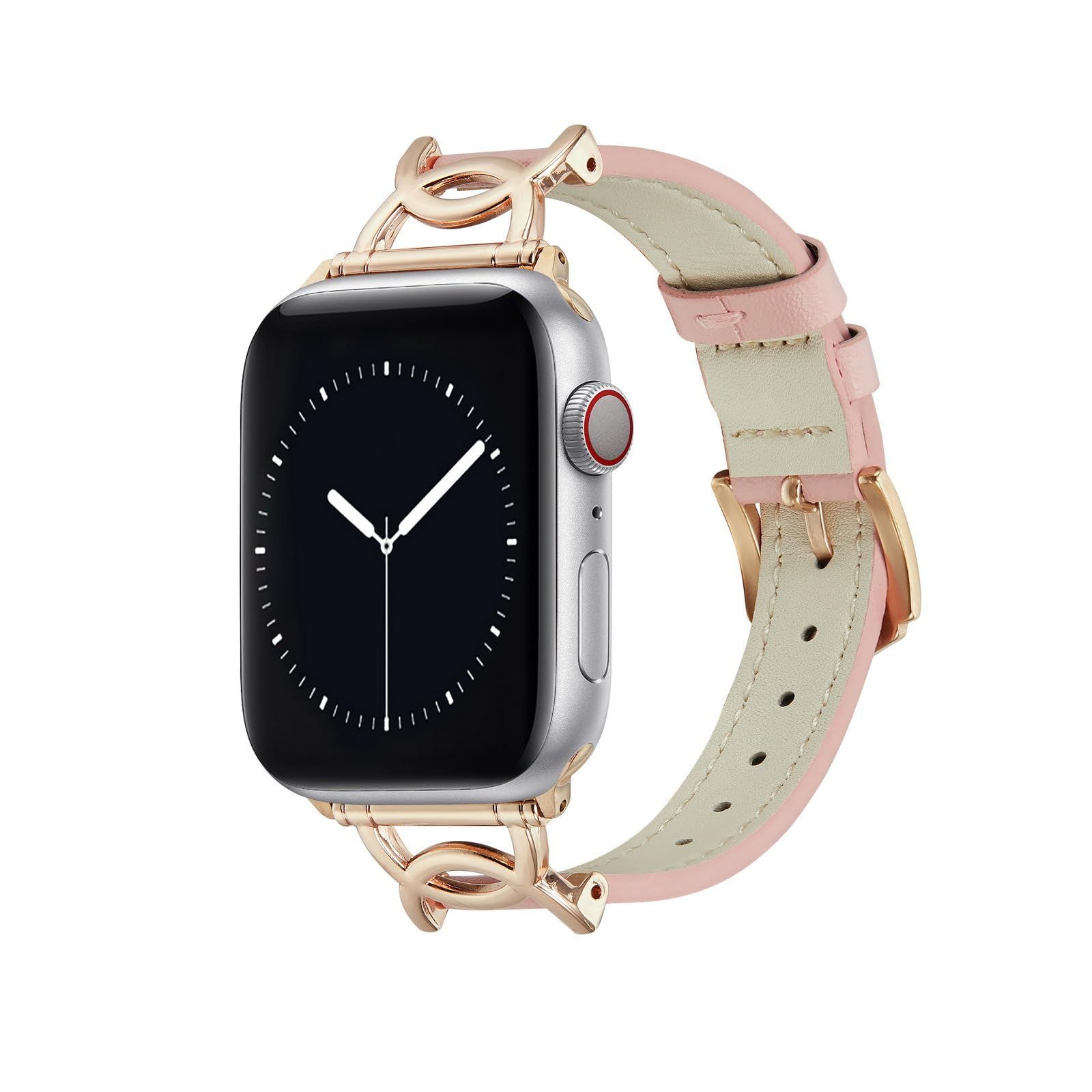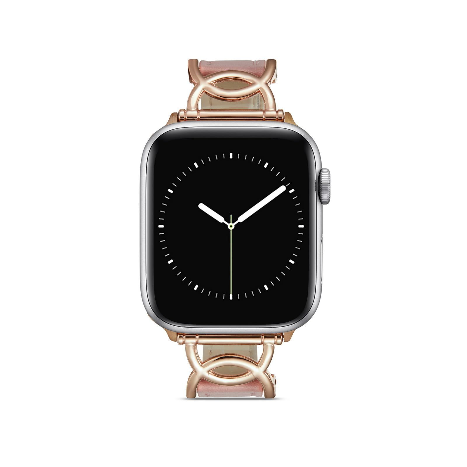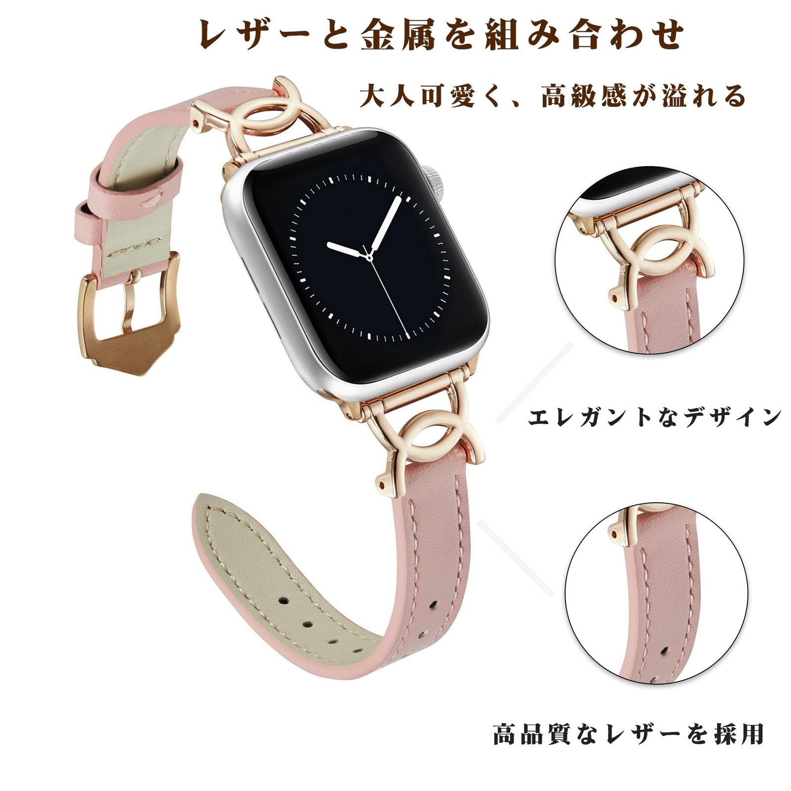 【新しいデザイン】このアップルウォッチ用のバンドは高級感のあるレザーとローズゴールドの金属を組み合わせが大人可愛く、どんなコーディネートにもお使いいただけます。シンプルながらもユニークで知的なデザインはオフィスシーンにもおすすめです。