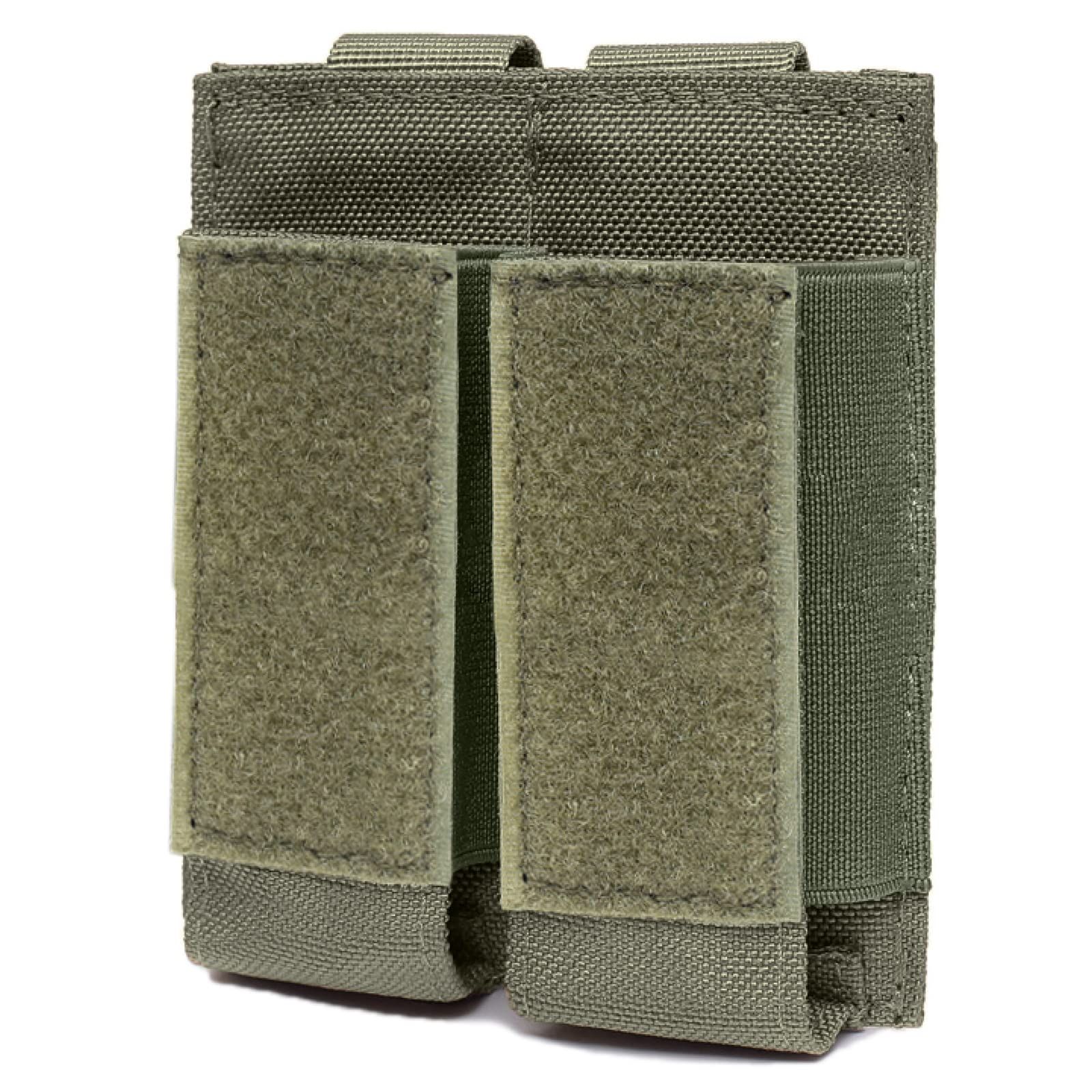 ?【モールシステム】ダブルピストルマグポーチは、MOLLE(モール)タープのウェビングを持つ各種ベスト、ベルトに取り付ける可能です