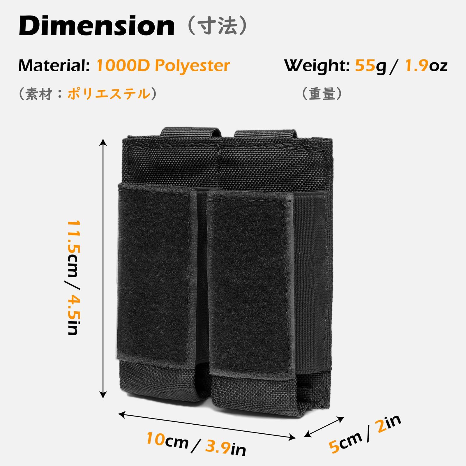 ?【仕様】素材:1000Dポリエステル サイズ:10cmx11.5cmx5cm 重量:55g 対応できるピストルマガジン:GLOCK、M1911、92F、40mmの手榴弾など