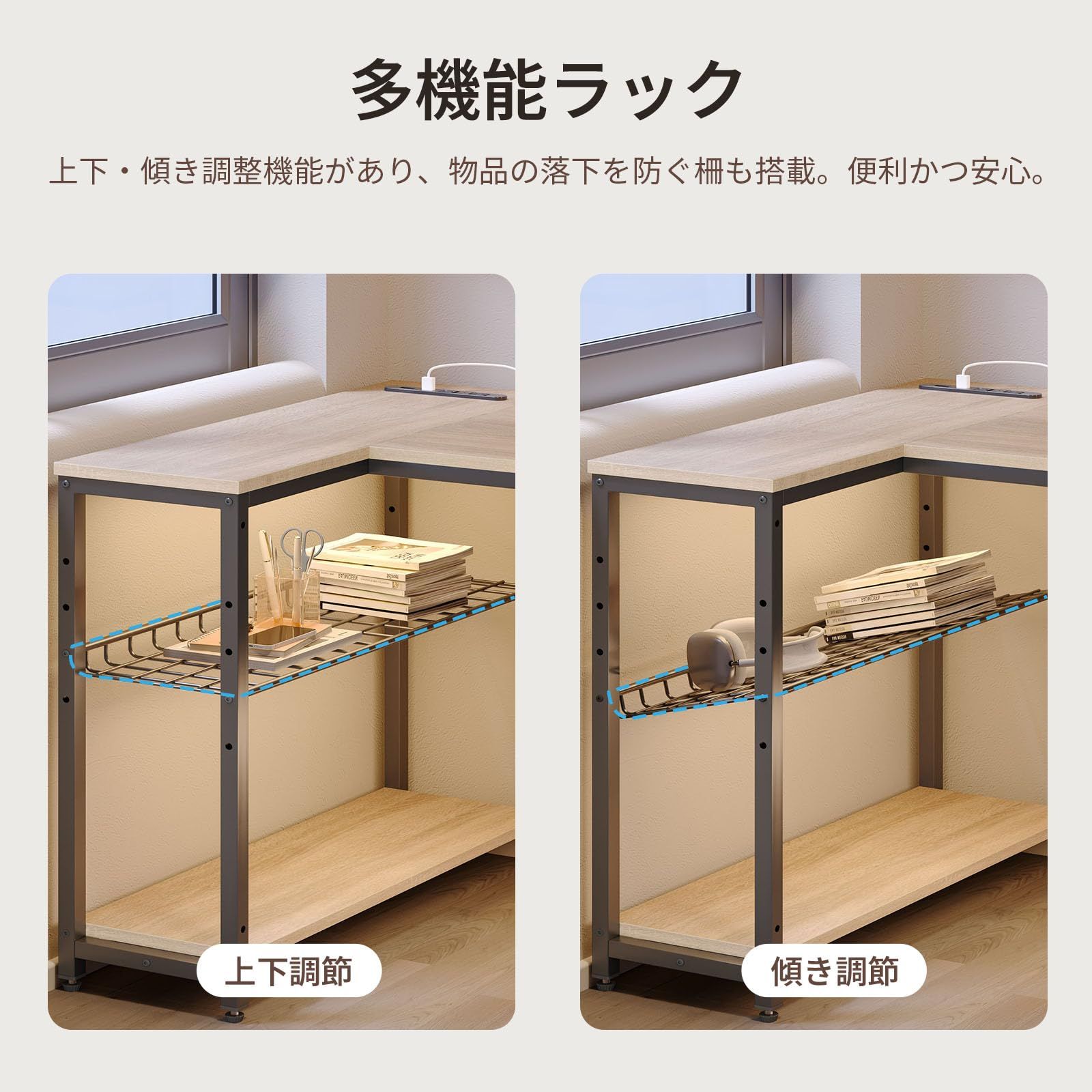 【再進化!Type-Cを搭載したデスクが新登場!】Bestierの最新のL字デスクは、従来のコンセント付きデスクを全面的に更新しました。2つのAC差込口、1つのType-Cポート、1つのUSB-Aポートを搭載し、一度に3台のデバイスを同時に充電可能。パワフルな3-in-1高速コンセント付きのパソコンデスクで、どのような機器でもフルスピードで充電ができます。さらに、配線もスッキリとまとめられ、いつでも作業をお楽しみいただけます!