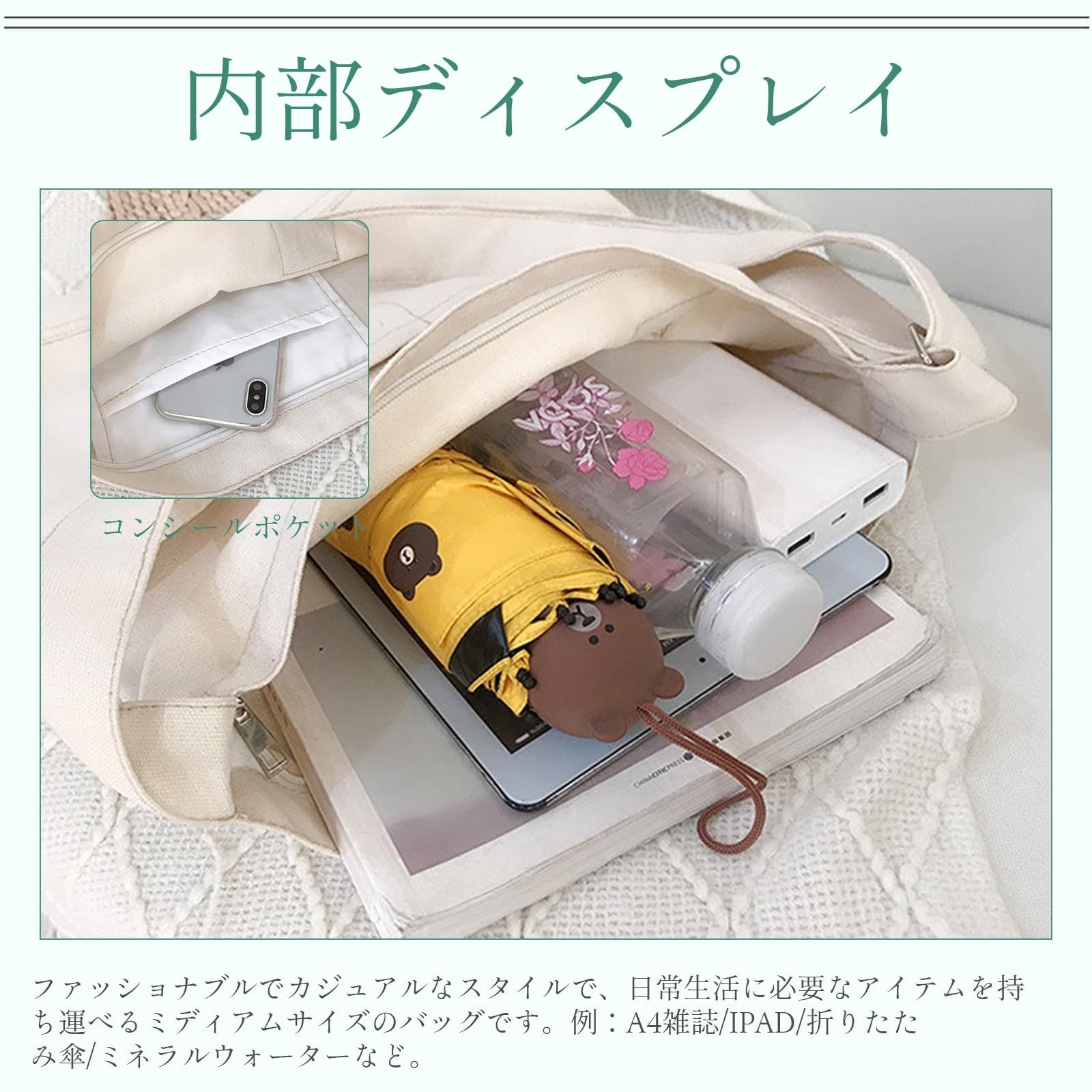 ?多機能トートバッグ :外観は簡潔で、気前がいいです。生地は柔らかくて、生地は優良です。ホワイトカラー、学生、お母さんは全部使えます。人に気ままで、若い感じをあげます。