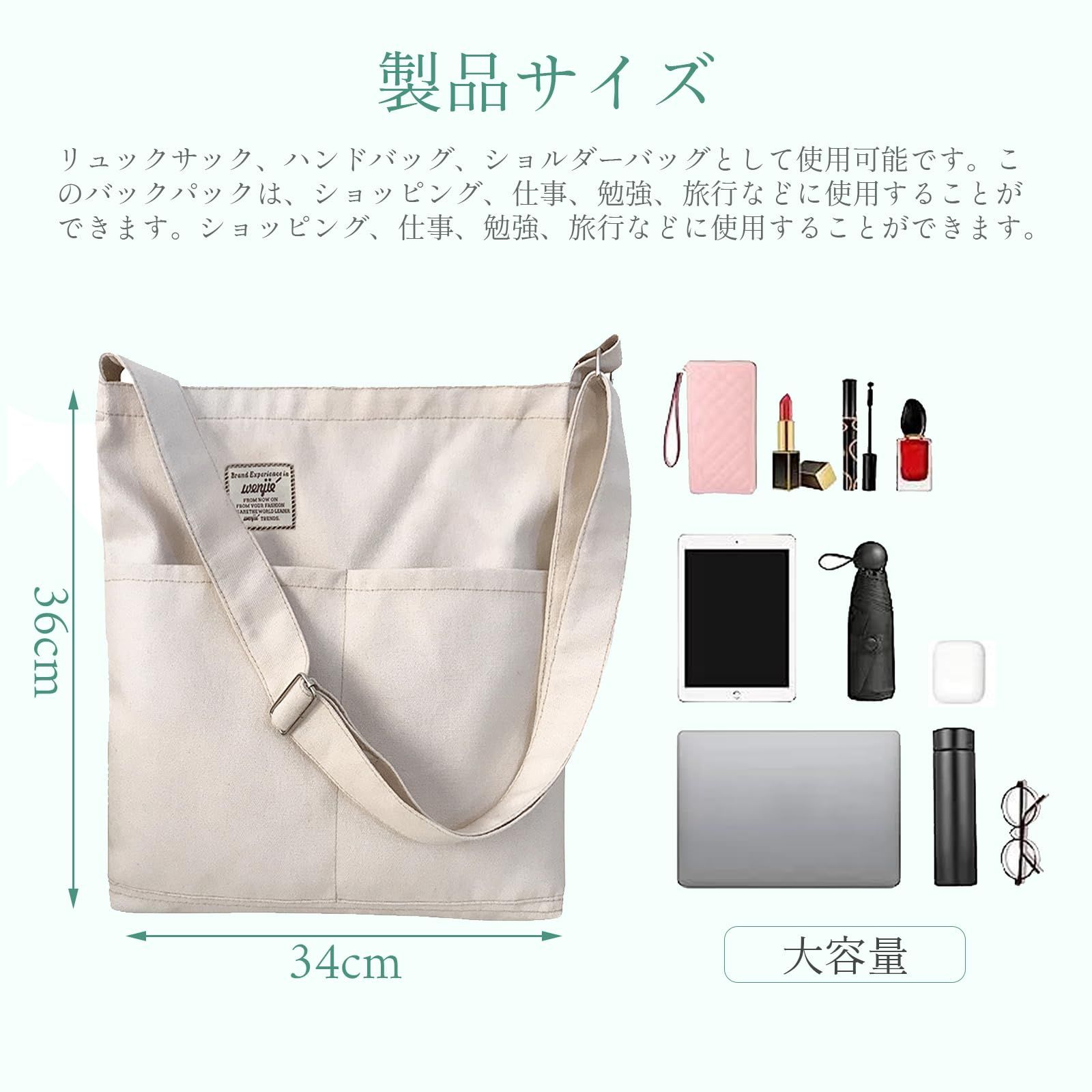 ?大容量:A 4雑誌、B 5傘、ペットボトル、化粧品などを手軽に保管できます。一泊二日間の旅行カバン、フィットネスバッグ、友達や家族とピクニックに出かけたり、通勤、学校に行ったり、子供を連れたりします。サイズは適当です。