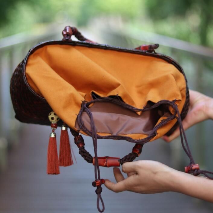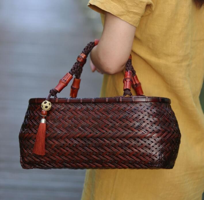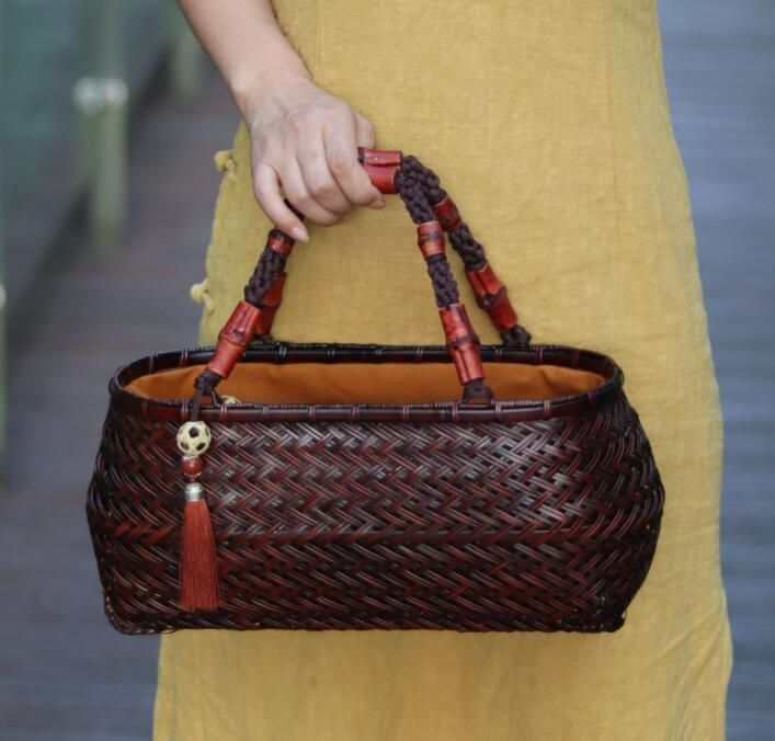 大容量収納かご おしゃれ竹籠 編み 収納箱 小物入れ 茶道*お菓子入れ 竹工芸