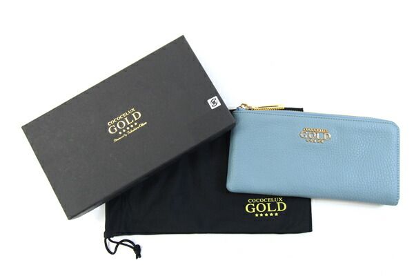ココセリュクスゴールドL字ファスナー長財布ライトブルーレザー中古ロングウォレットジップウォレットレディースCOCOCELUXGOLD