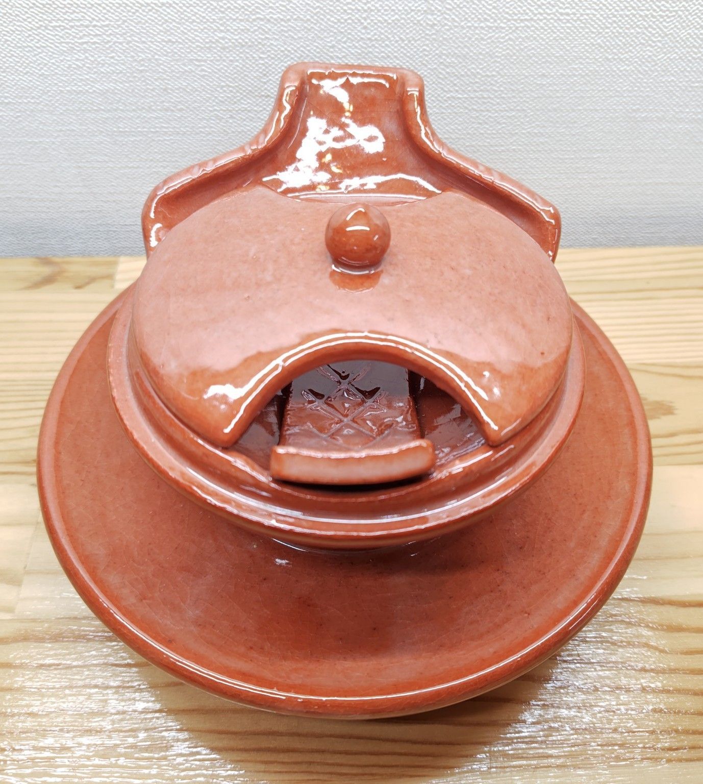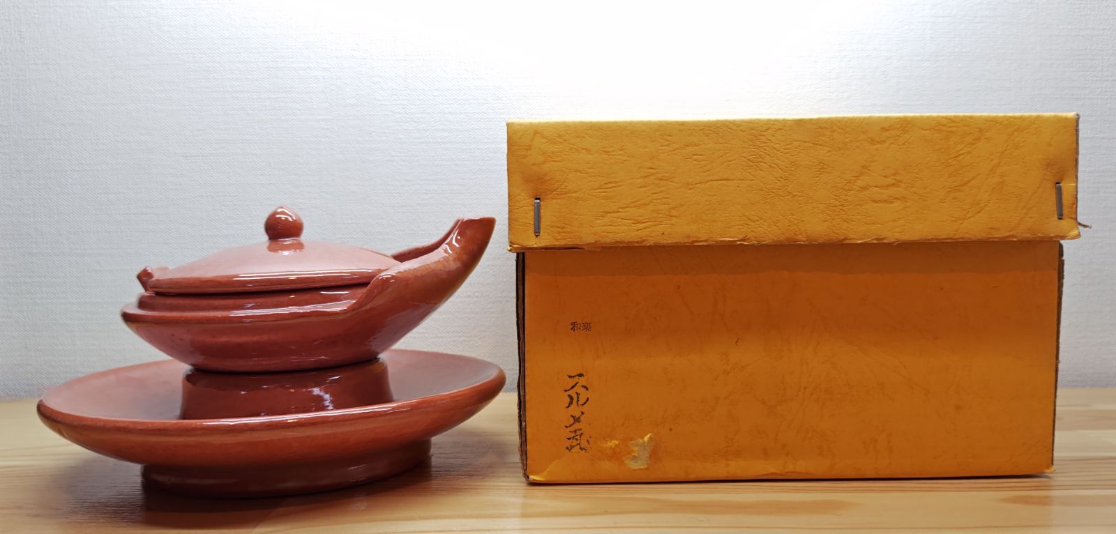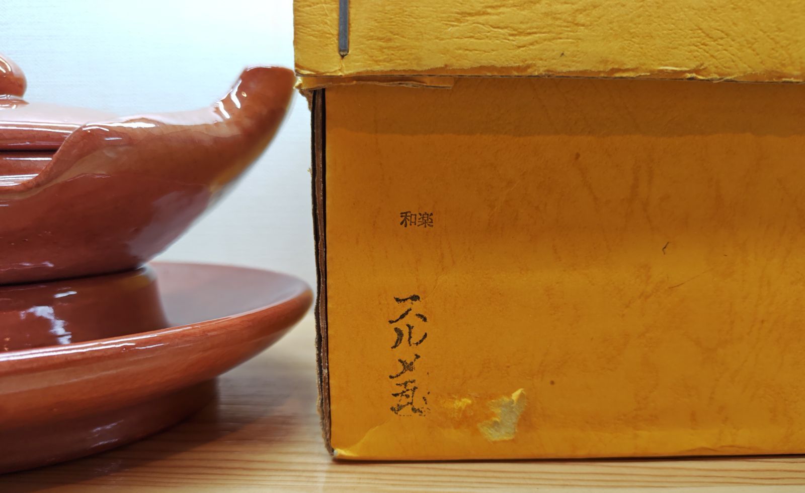 【逢絢亭】茶道具 夜咄道具 するめ瓦 楽焼 赤楽 川嵜和楽 紙箱入り