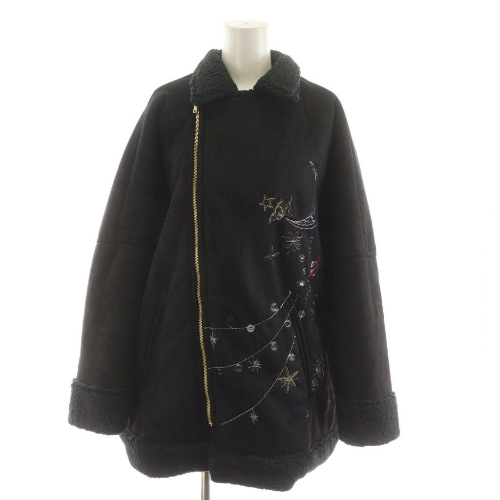 【商品名】スカラー ScoLar フェイクムートンコート ボアコート M 黒 ブラック 刺繍 /RR