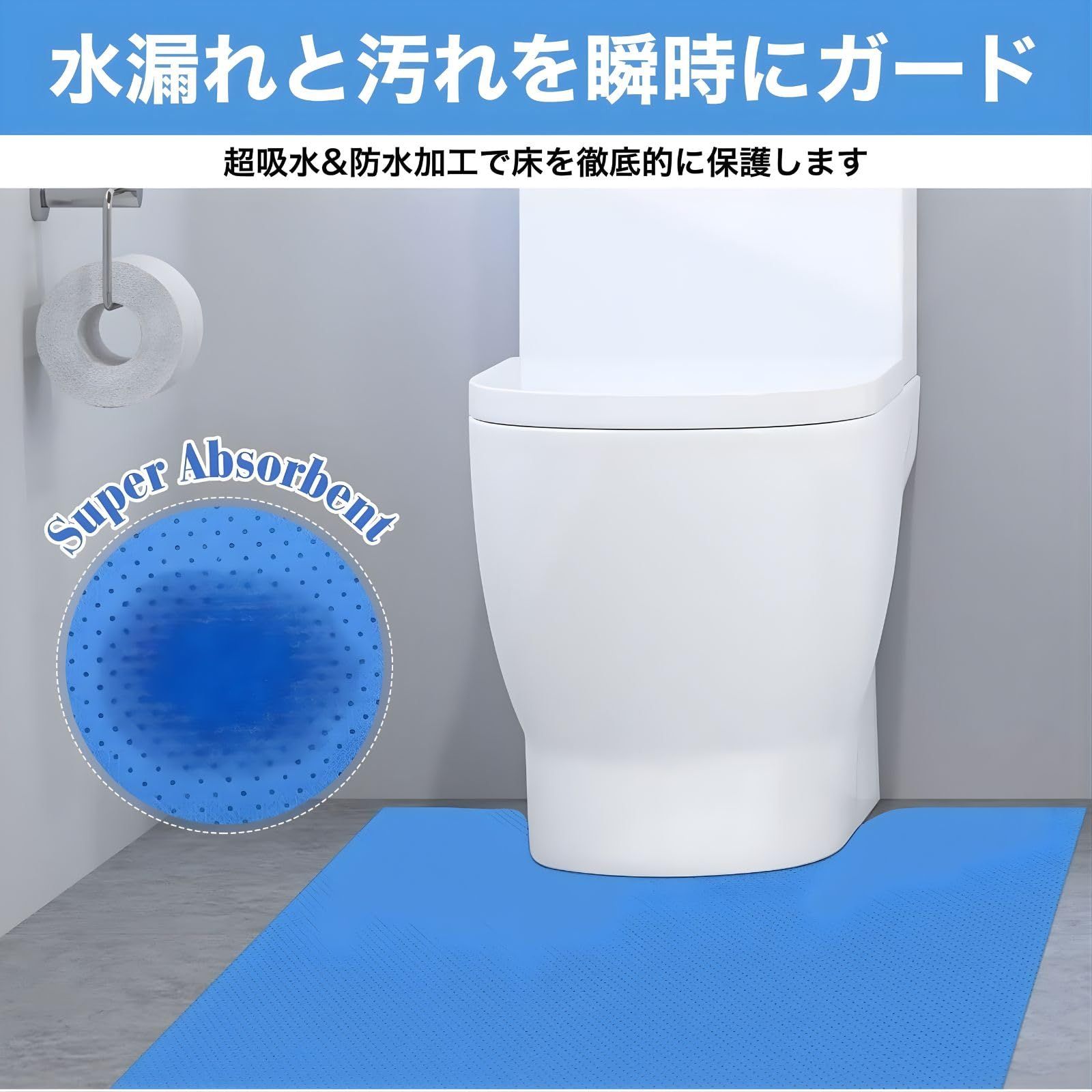 不織布」は、U字型にカットされた使い捨ての足元マットです。主に家庭や商業施設のトイレで使用でき、便器の周りの床を水濡れや汚れから守ることを目的とし、超吸水・防水機能付きです。✅マットの裏面は防水仕様。水分が床に染み込むのを防ぎ、トイレ床材の劣化を防ぎます。さらに滑り止め加工で、お子様やご高齢の方の転倒リスクも軽減。便器の足元を隙間なくカバーし、衛生的な空間を維持します。✅日本の標準的な便器形状にもしっかりフィットするU型カットです。また、汚れたらすぐに使い捨てOK!頻繁なマットの洗濯や、床拭きのストレスから解放されます。特に来客時や小さなお子様のいるご家庭に最適です。✅マジックテープで簡単設置ができます。裏面に付属のマジックテープ(面ファスナー)で床にしっかり固定でき、ズレにくいです。