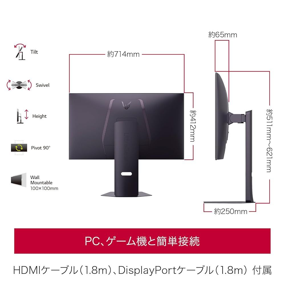 スタンドあり:714 × 511~621 × 250(mm) / 9.1kg
