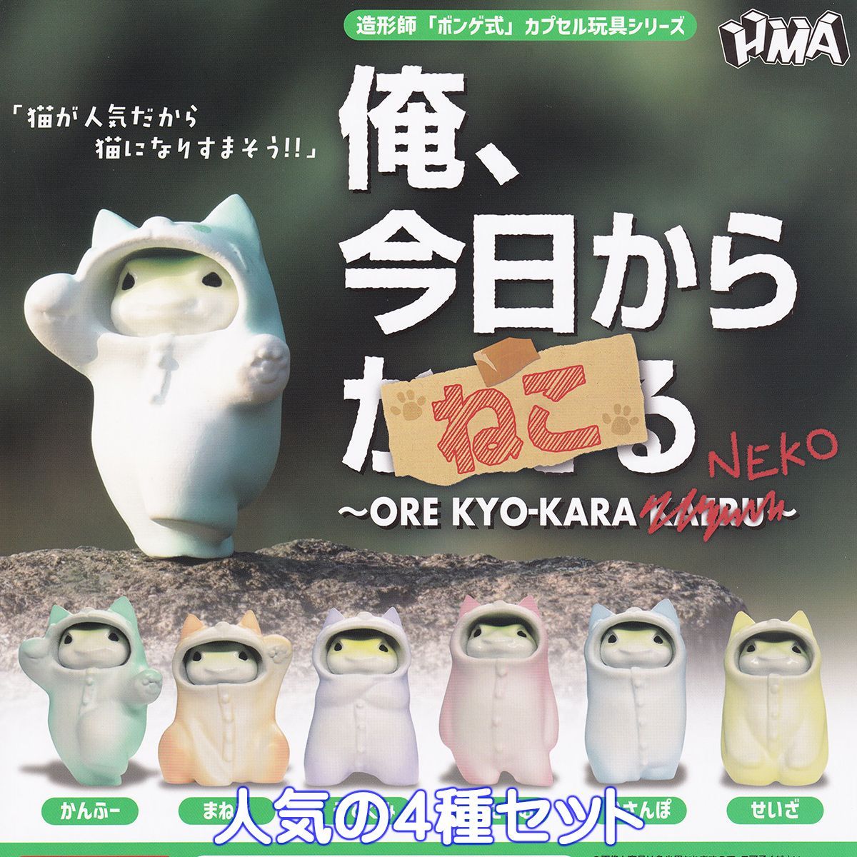 造形師ボンゲ式が贈る人気カエルフィギュアシリーズ「俺、今日からねこ」が、カプセルトイになって新登場!