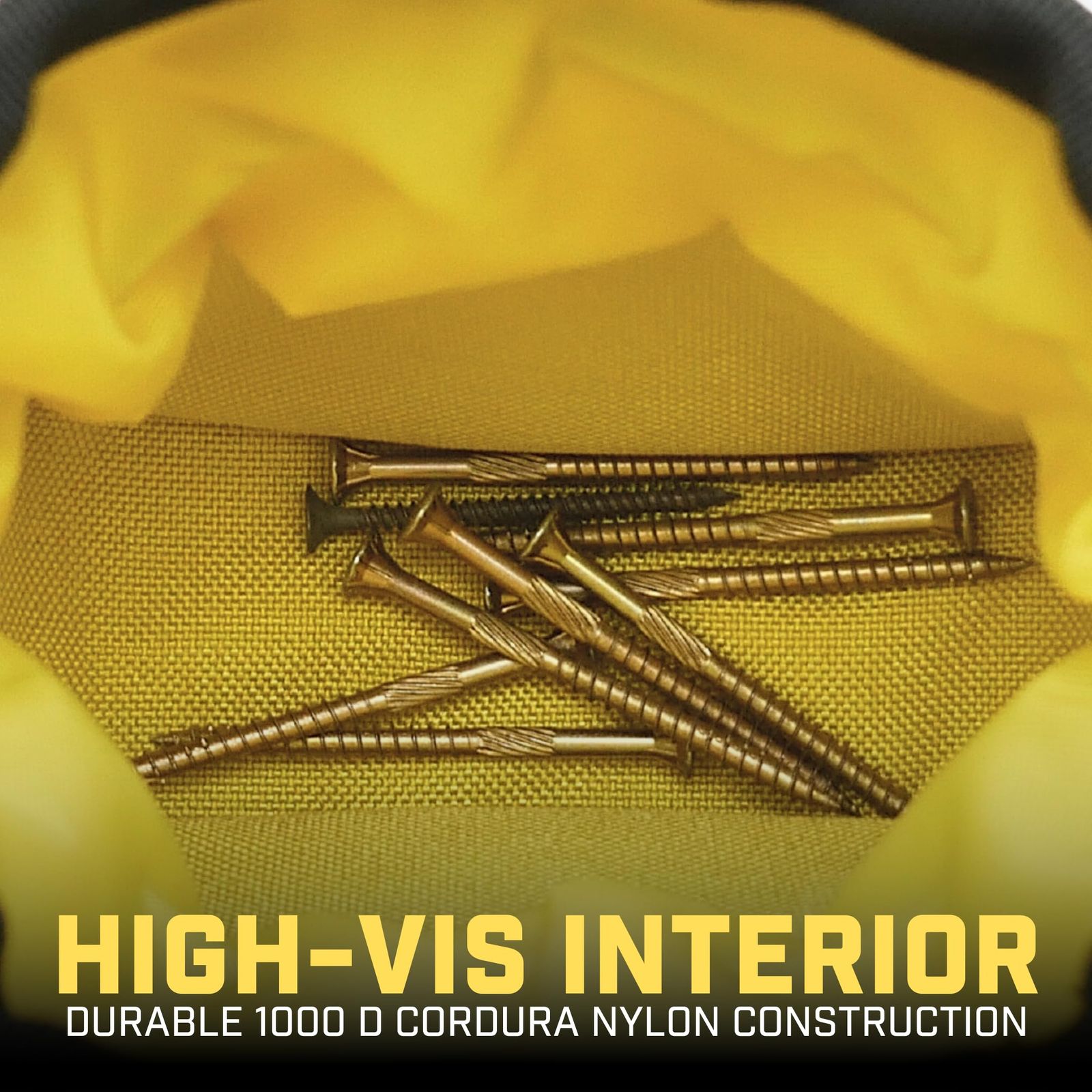 工具ベルトに加えたり、荷物を軽くしたいときだけでも便利です。 内部は明るい黄色で中身が分かりやすい。多目的ポーチ |
