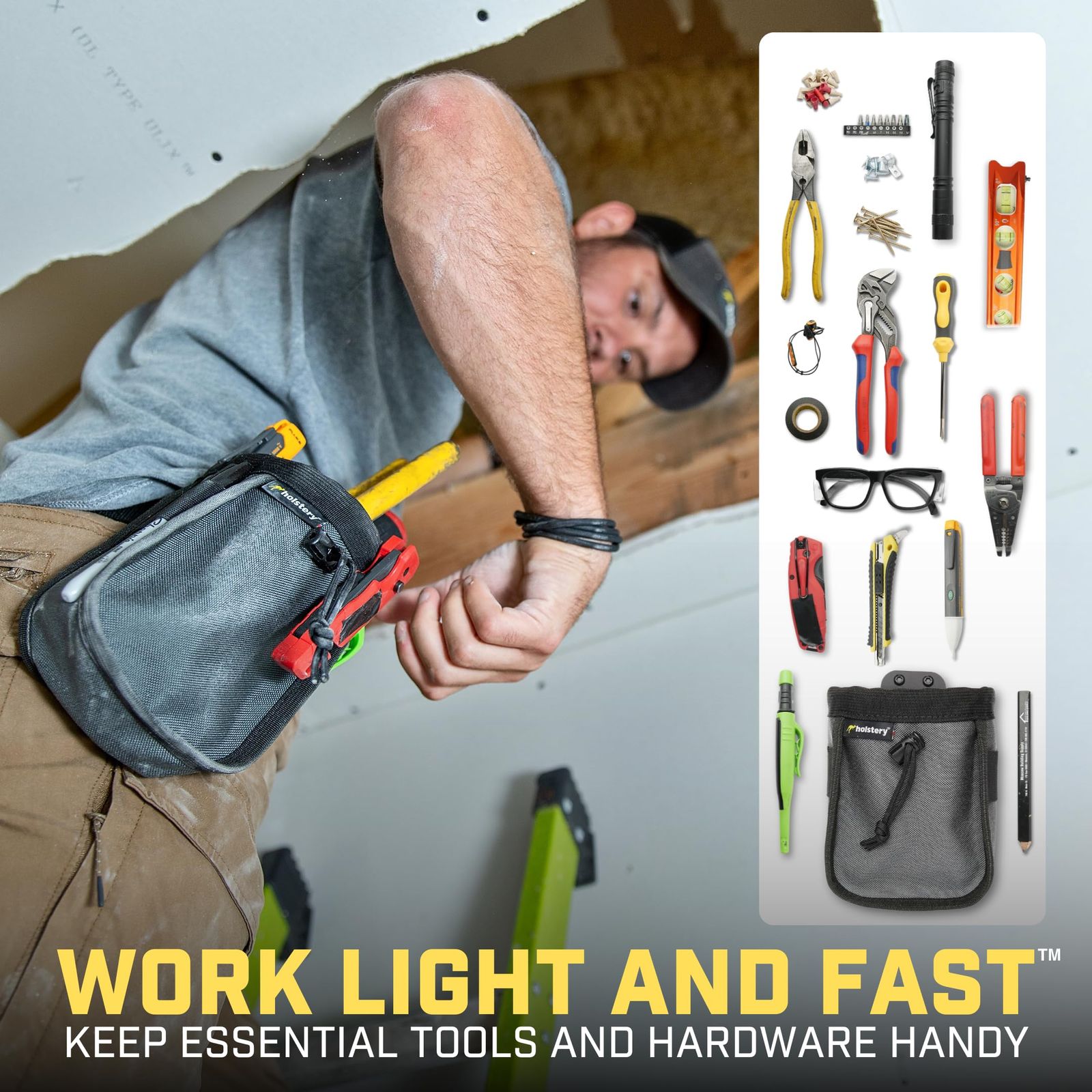 軽くて素早く作業可能 | ベルト、ポケット、ツールバッグに簡単にクリップで留めることができるこの軽量ポーチに不可欠なツールを持ち運ぶことができます。