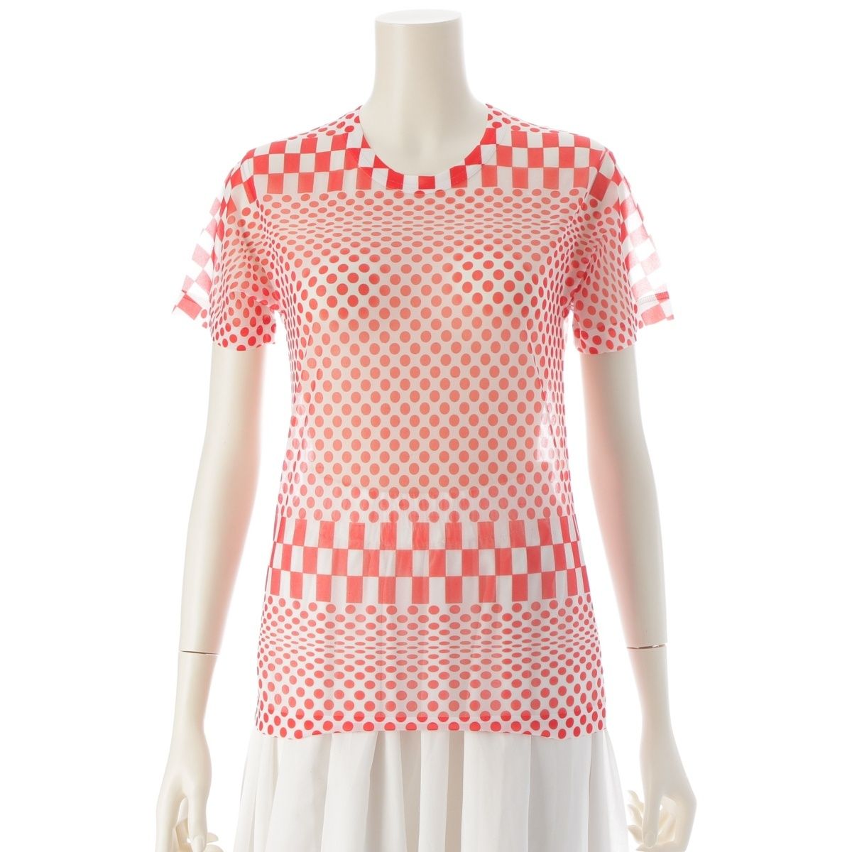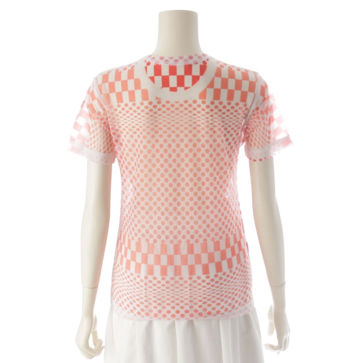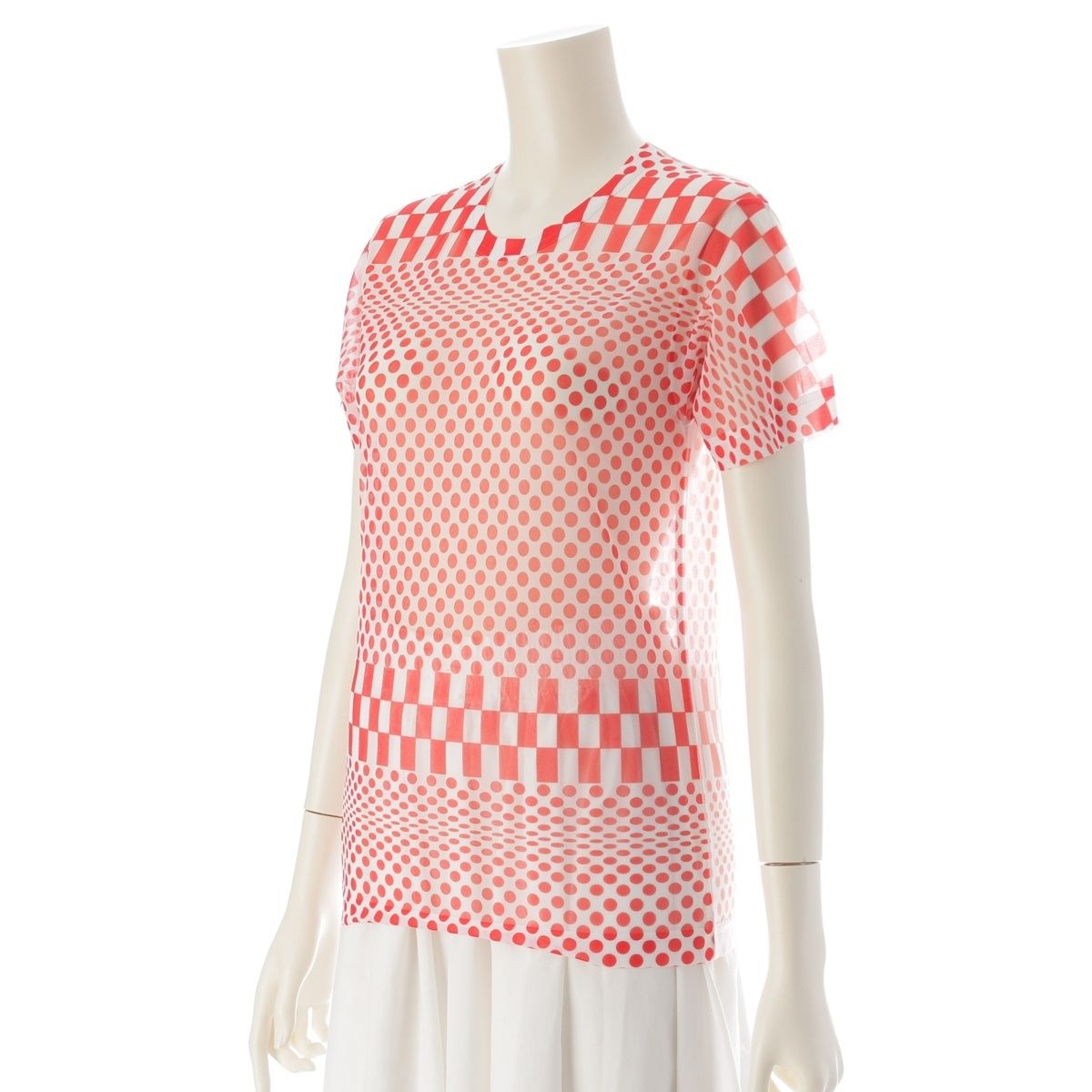 コムデギャルソン 2001年 ドット チェッカー シアー トップス ホワイト レッド【中古】