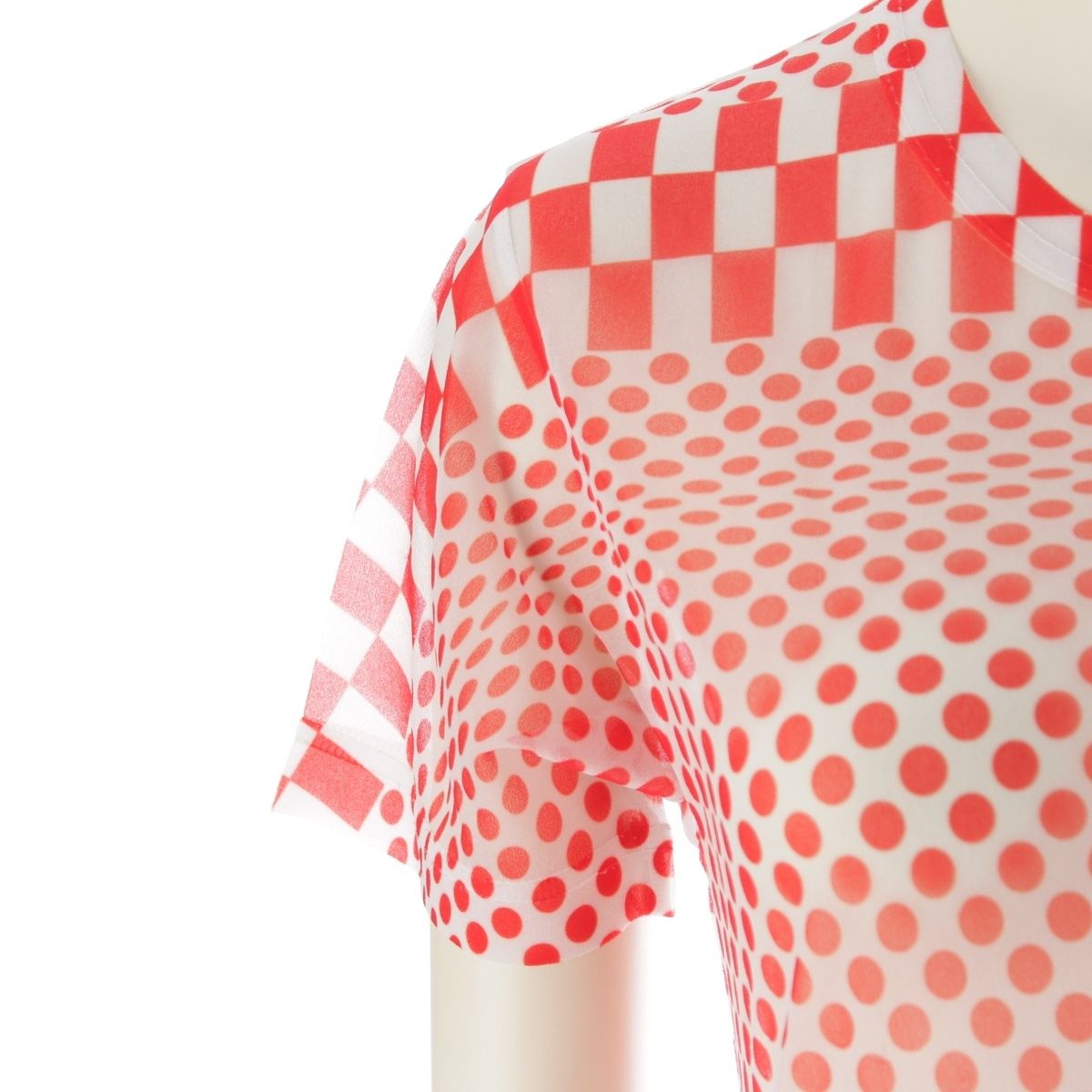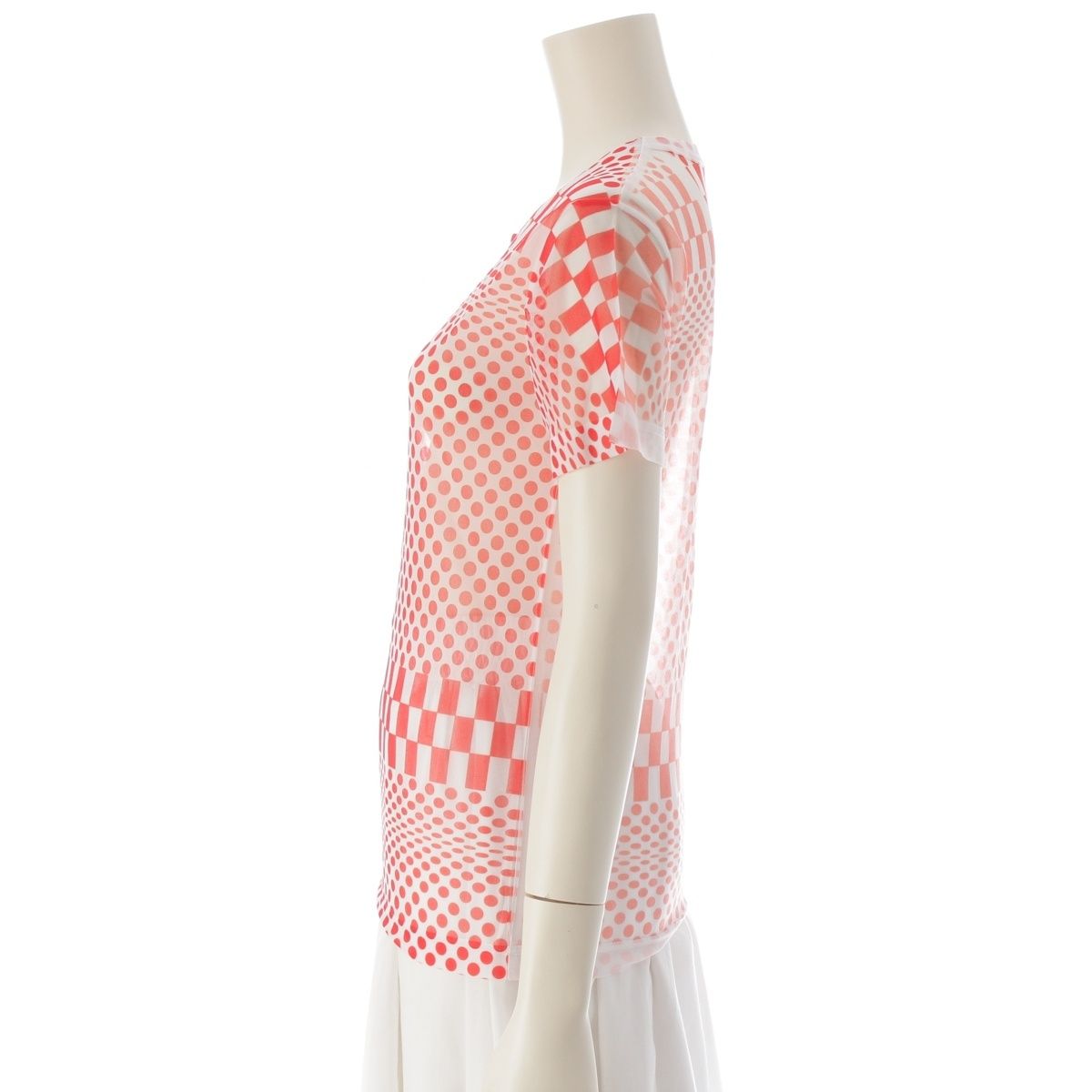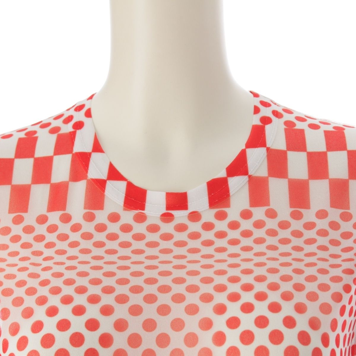 コムデギャルソン 2001年 ドット チェッカー シアー トップス ホワイト レッド【中古】