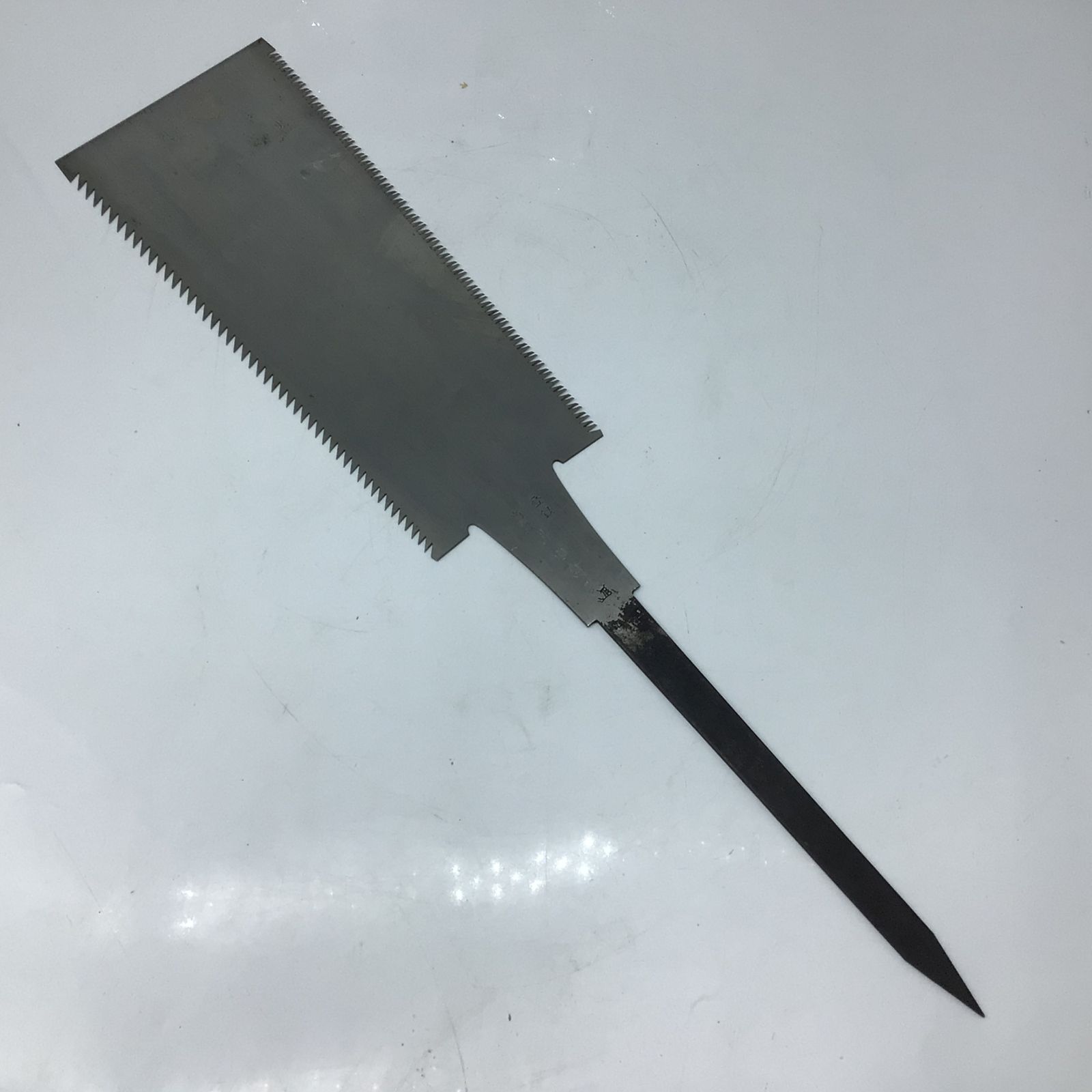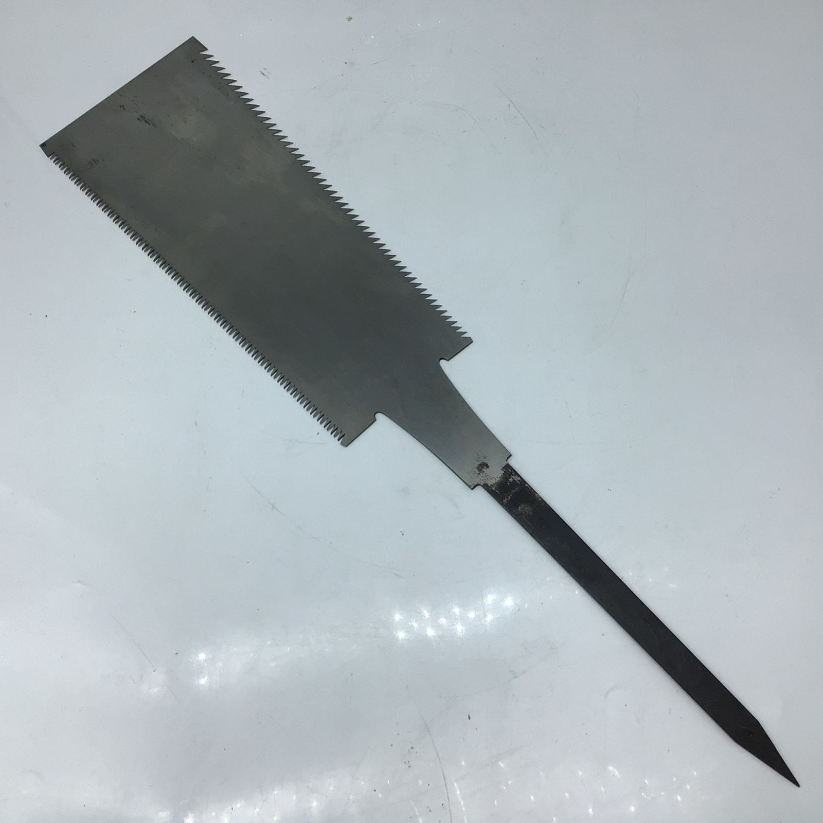 長さ 58㎝ 刃の長さ 30㎝ のこぎり面 上部 13㎝ 厚さ 約0.5㎜ 下部 10㎝ 厚さ 約1㎜