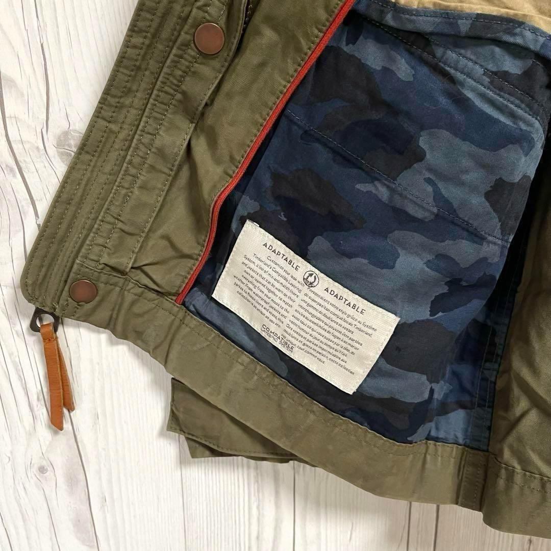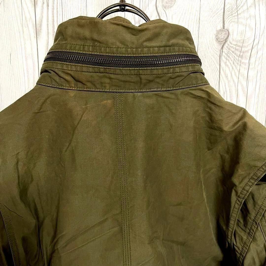 スタンドカラーは風を防ぎ、ジッパーとボタンで