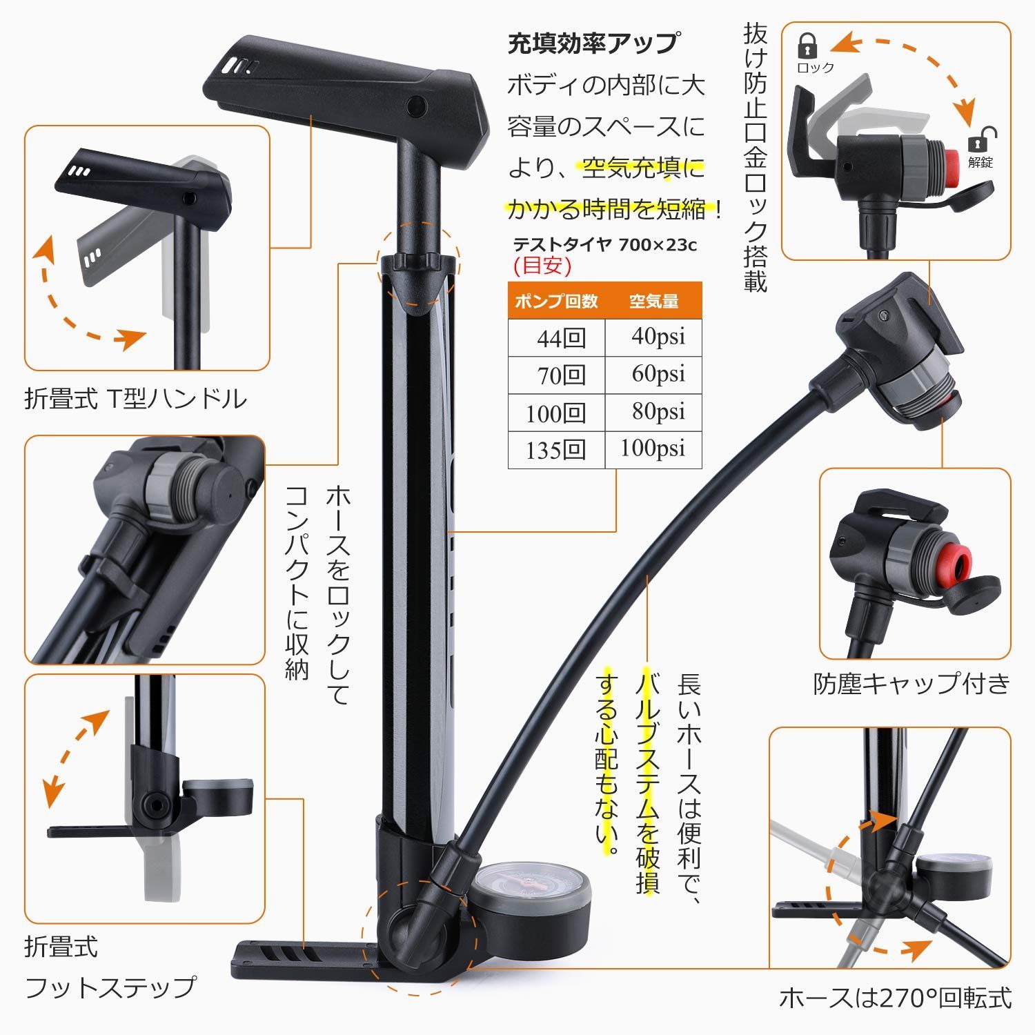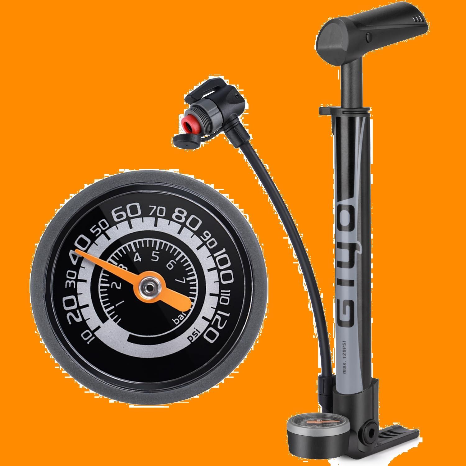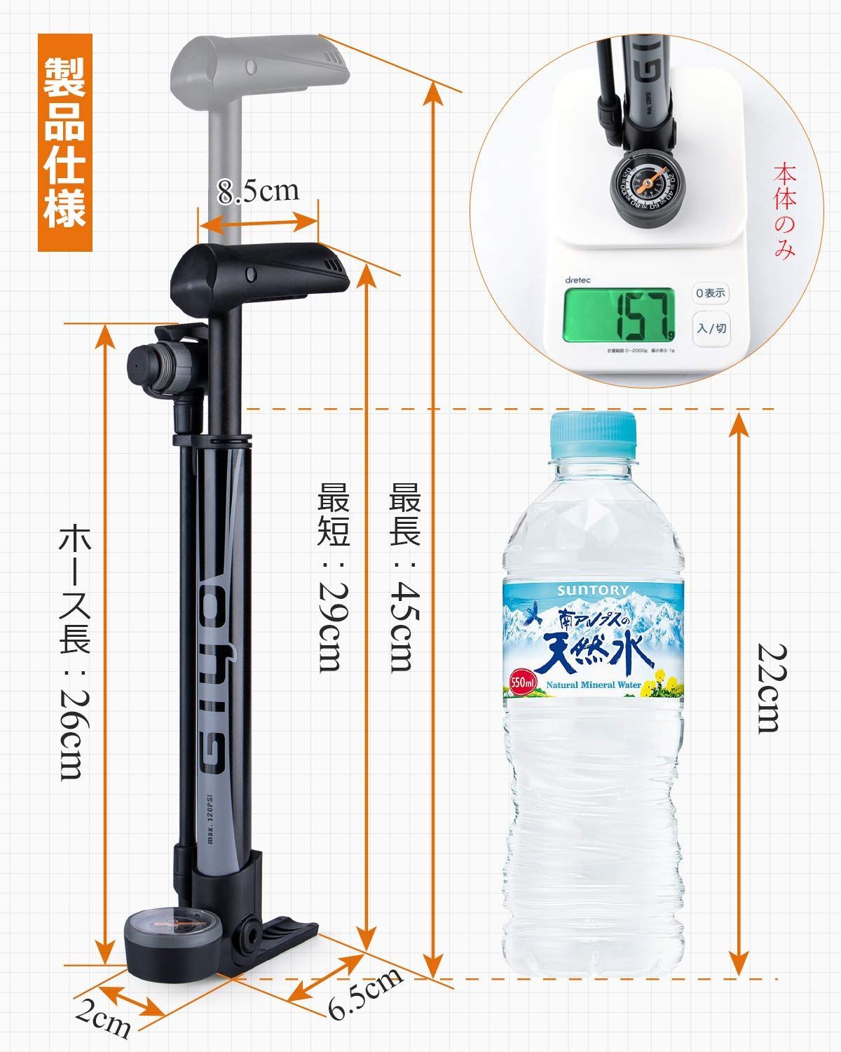 GIYO 自転車 空気入れ 携帯ポンプ 仏式 英式 米式 120psi ゲージ付き コンパクト 軽量 ミニフロアポンプ ロードバイク クロスバイク ママチャリ 各種 対応 (GM-642)