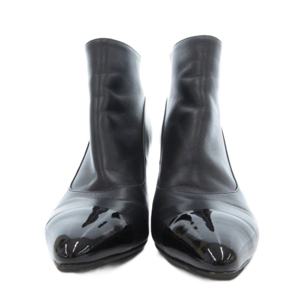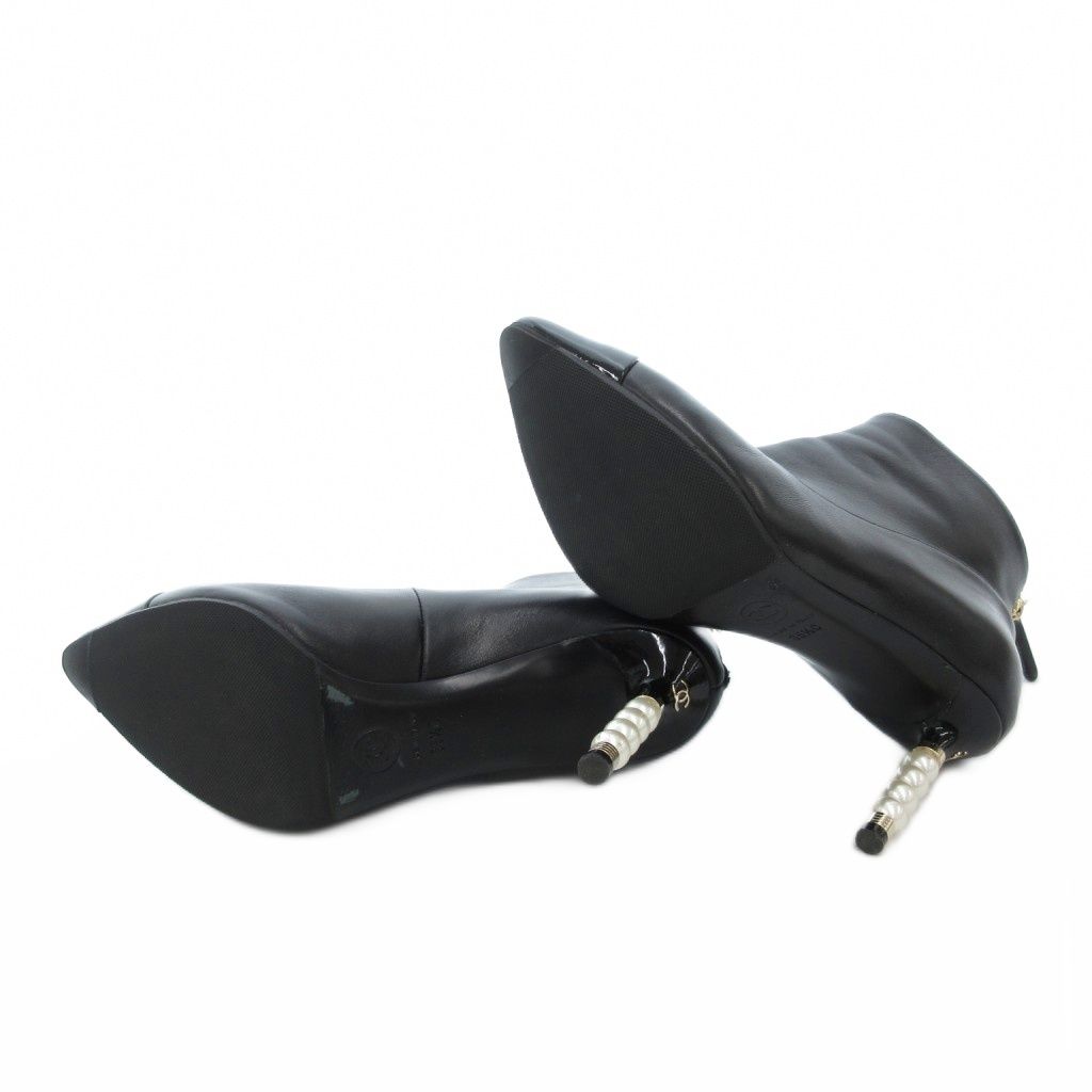 【商品名】シャネル CHANEL ブーティ ショートブーツ レザー フェイクパール ハイヒール ポインテッドトゥ 35.5 黒 ブラック /UO