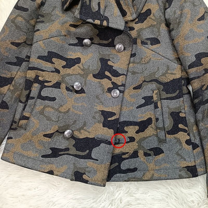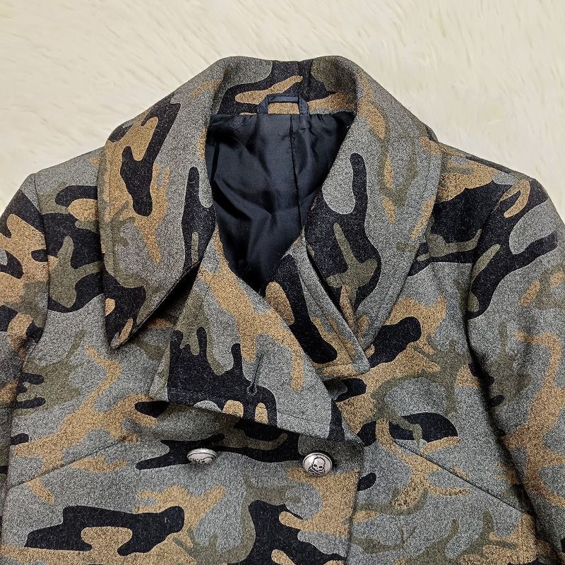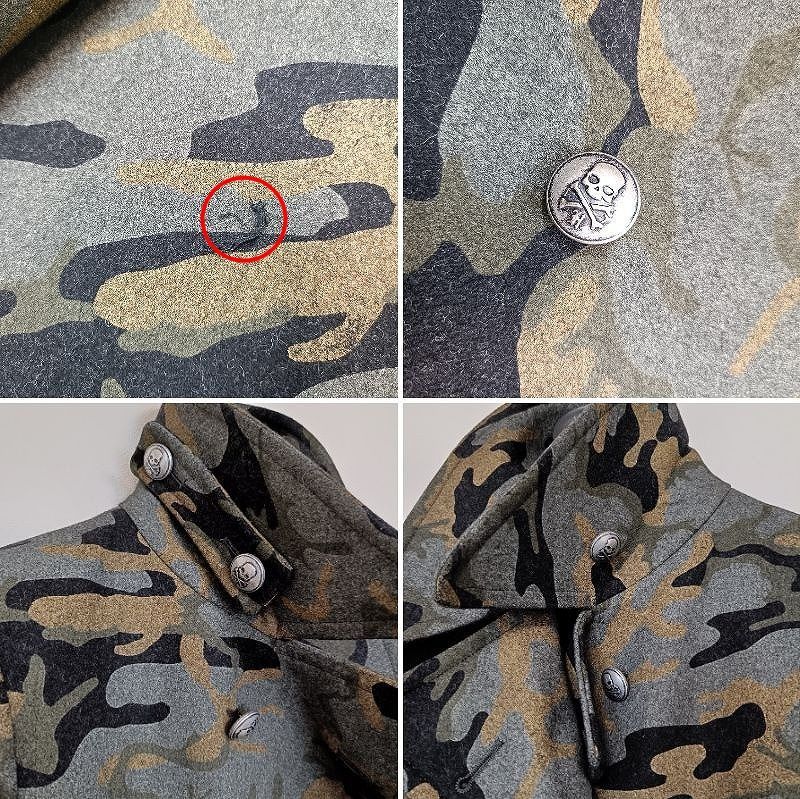 ◆アイテム: カモフラピーコート 迷彩 サイズ44 ルイジ・ビアンキ・マントヴァコラボ スカルボタン ユニセックス