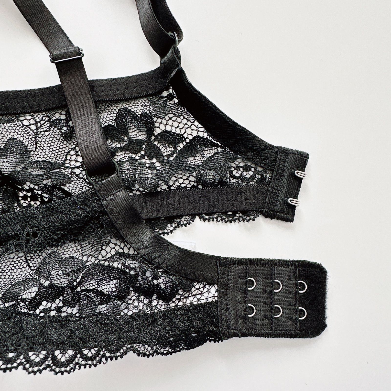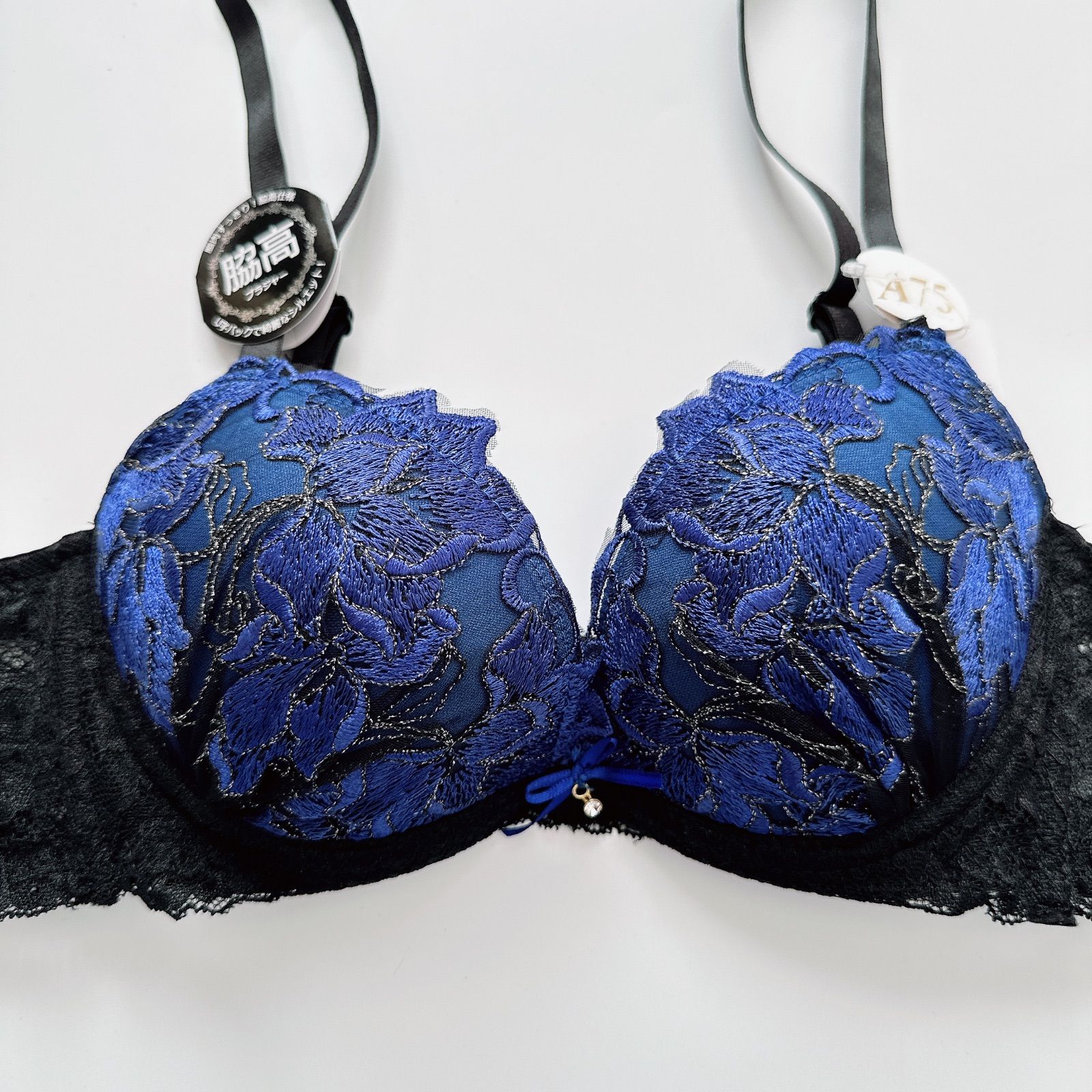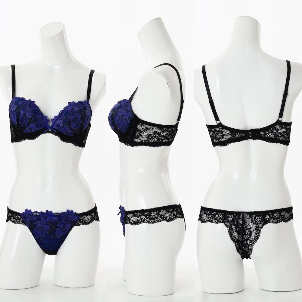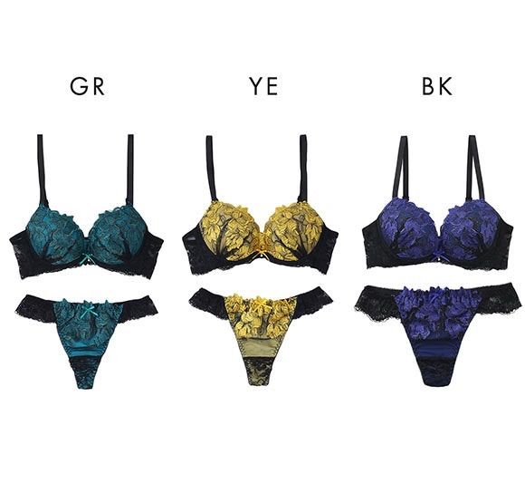 ビビットフルールエンブロイダリー育乳脇高ブラジャー&バック透けTバックショーツ