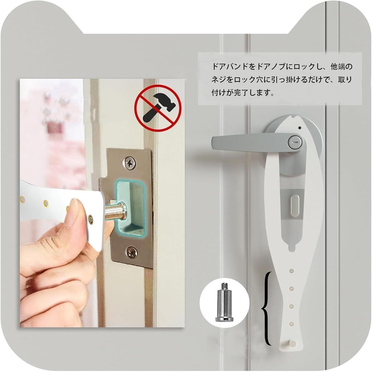 【使いやすい】ドアバンドをドアノブにロックし、他端のネジをロック穴に引っ掛けるだけで、取り付けが完了します。
