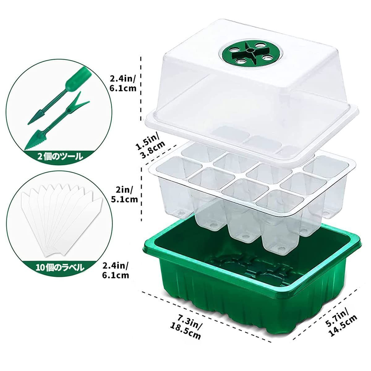 品質の厚い殻: 高品質のPETで作られた透明なプラスチックシェルは、高硬度、高靭性で作られた苗ボウルは、洗浄して再利用できます。この育苗ポットは種子の始まりに最適なサイズをデザインされた。各セルサイズは3.7x3.7x5.5cm、十分な間隔のセルは、混雑を防ぎ、少ないスペースでより多くの苗を可能にします。