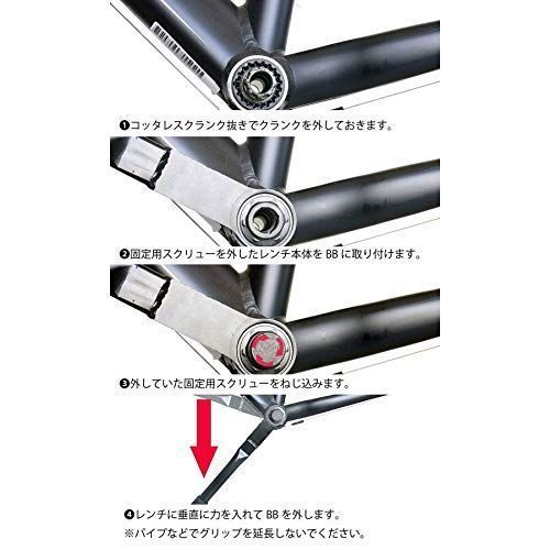 ※正ネジ、逆ネジを確認してから使用してください。 パイプなどで延長は絶対にしないでください。 固着したBBは潤滑剤を浸透させてからレンチを使用してください。 レンチ破損の原因になります。