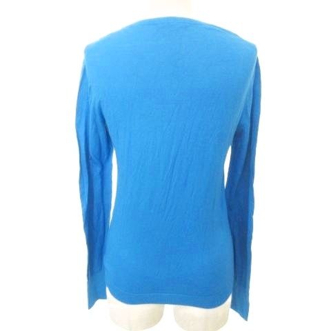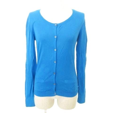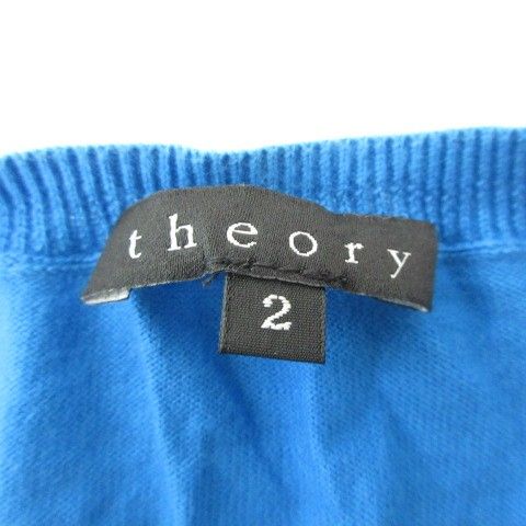 【商品名】セオリー Theory カーディガン 長袖 ボタン 無地 クルーネック 薄手 2 Mサイズ 青 ブルー ■YHS9