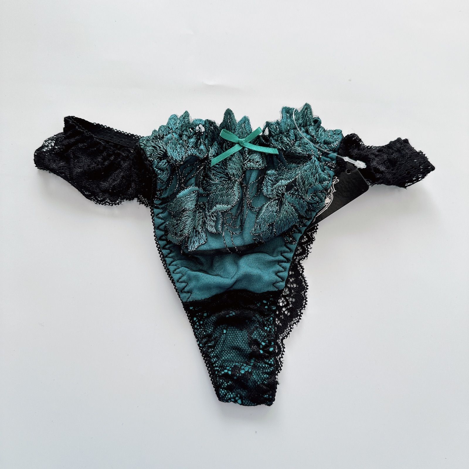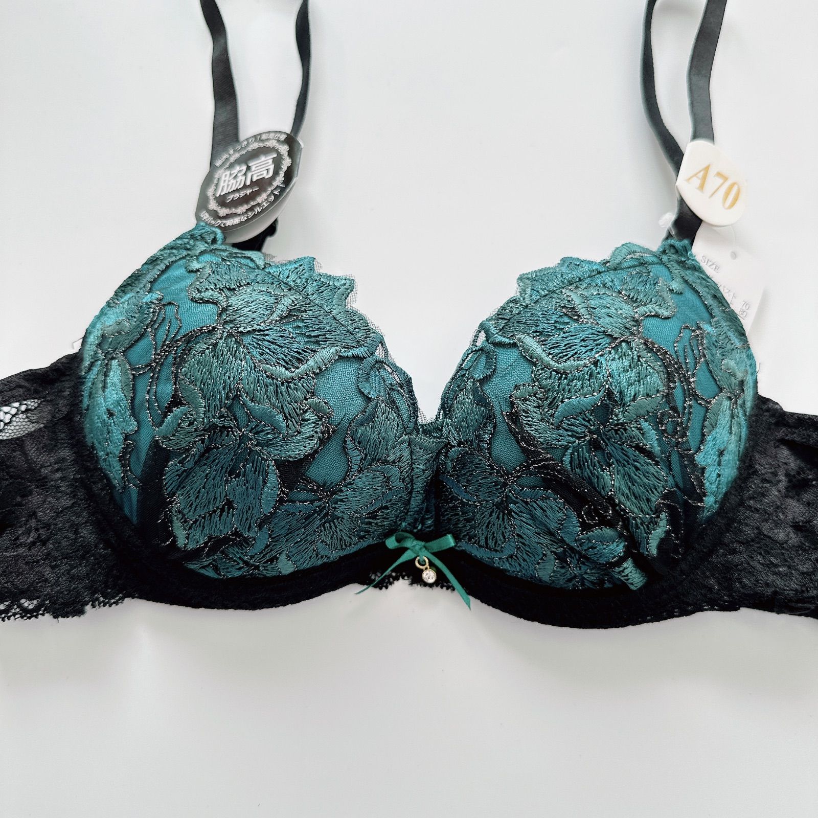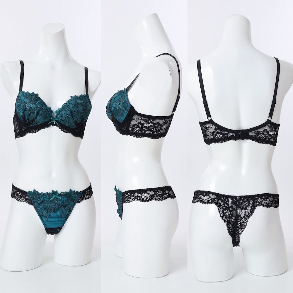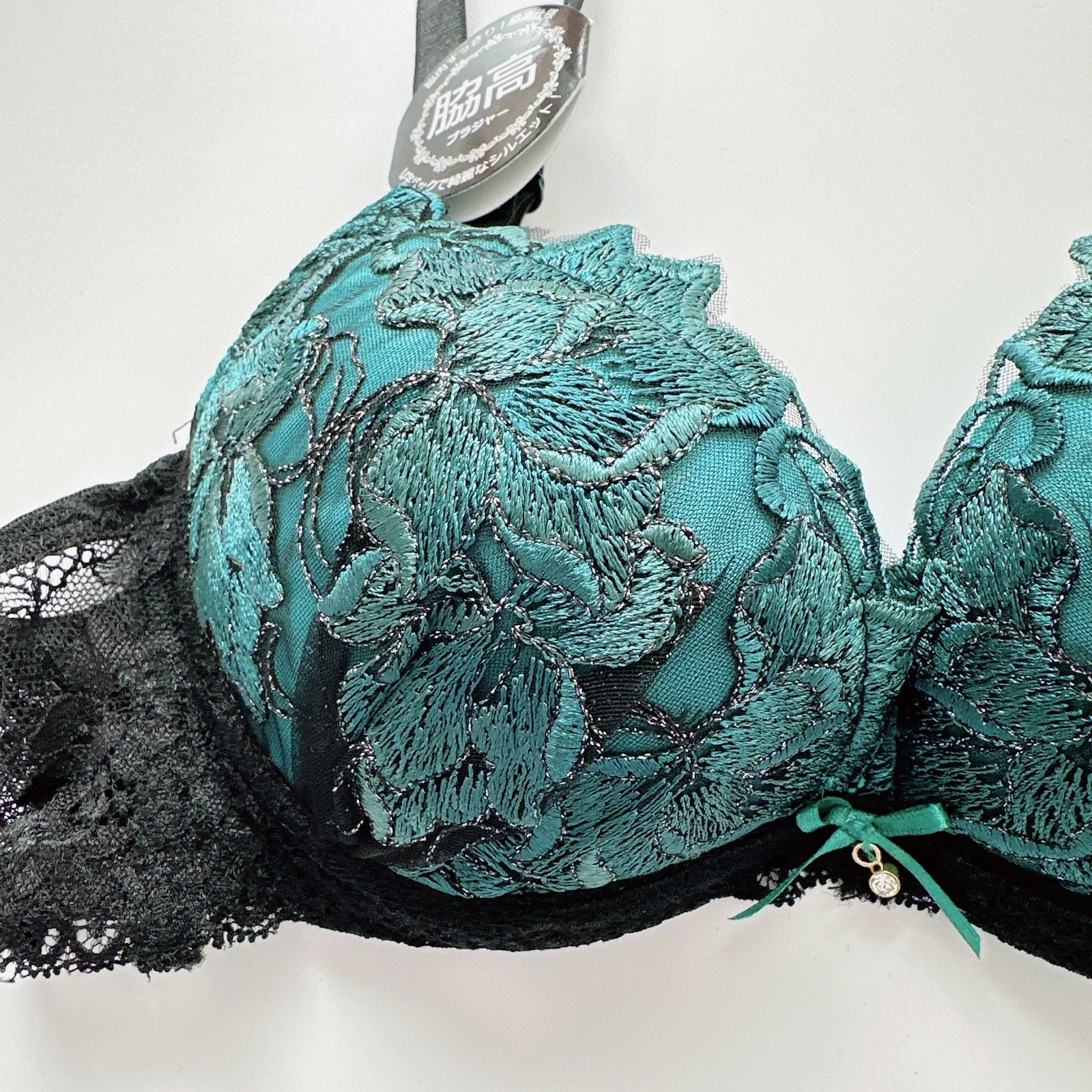 ビビットフルールエンブロイダリー育乳脇高ブラジャー&バック透けTバックショーツ