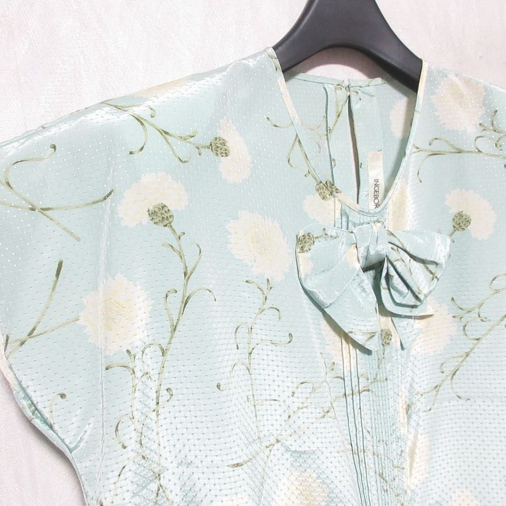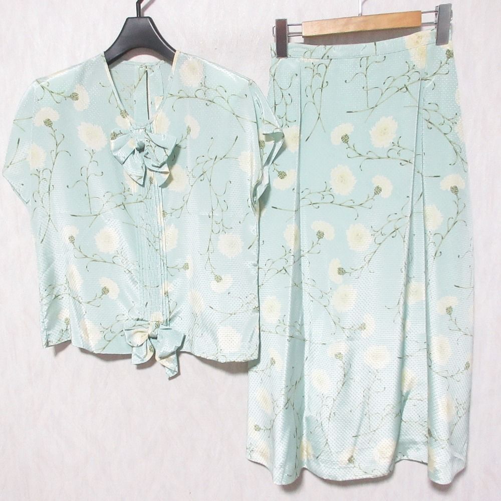 【商品名】INGEBORG インゲボルグ フラワープリントリボンブラウス スカート セットアップ ブルー