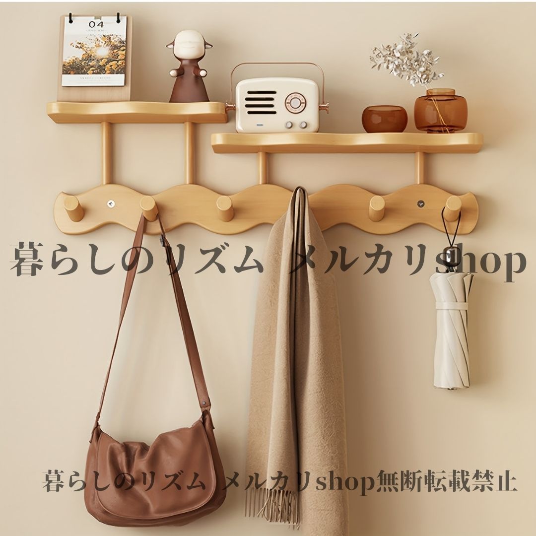 限られた玄関を賢く使える、竹製ウォールフック&棚付きエントランスオーガナイザー。