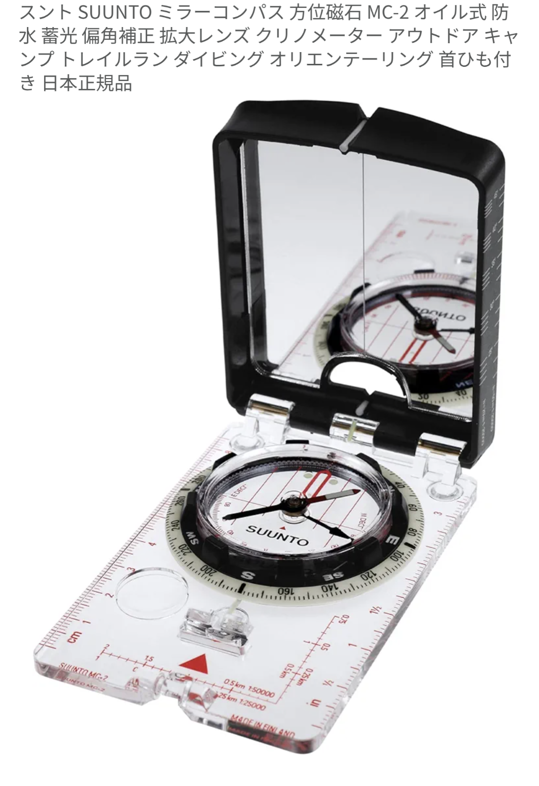 スント SUUNTO ミラーコンパス 方位磁石 MC-2 オイル式 防水 蓄光 偏角補正 拡大レンズ クリノメーター アウトドア キャンプ トレイルラン ダイビング オリエンテーリング 首ひも付き 日本正規品