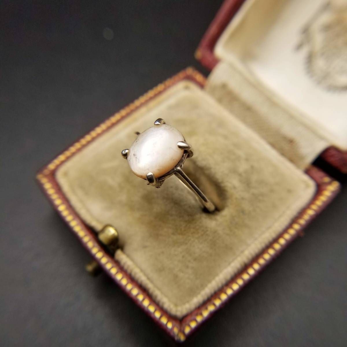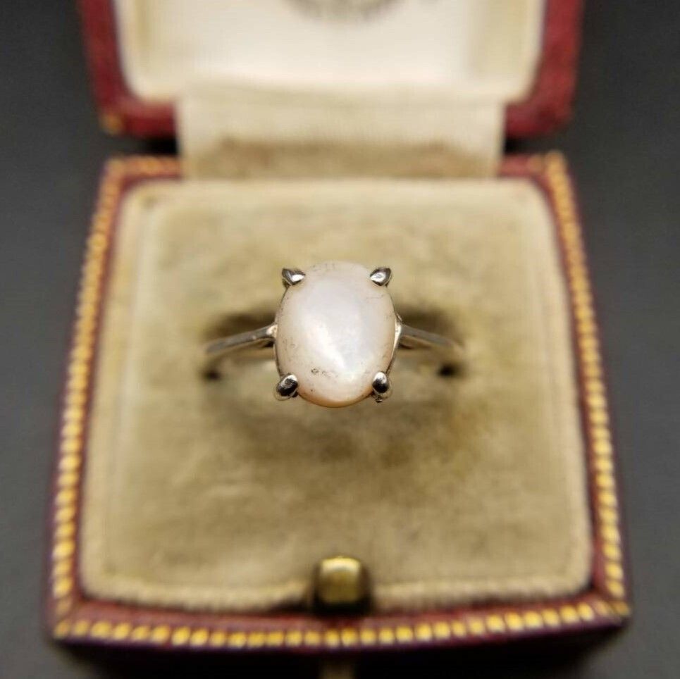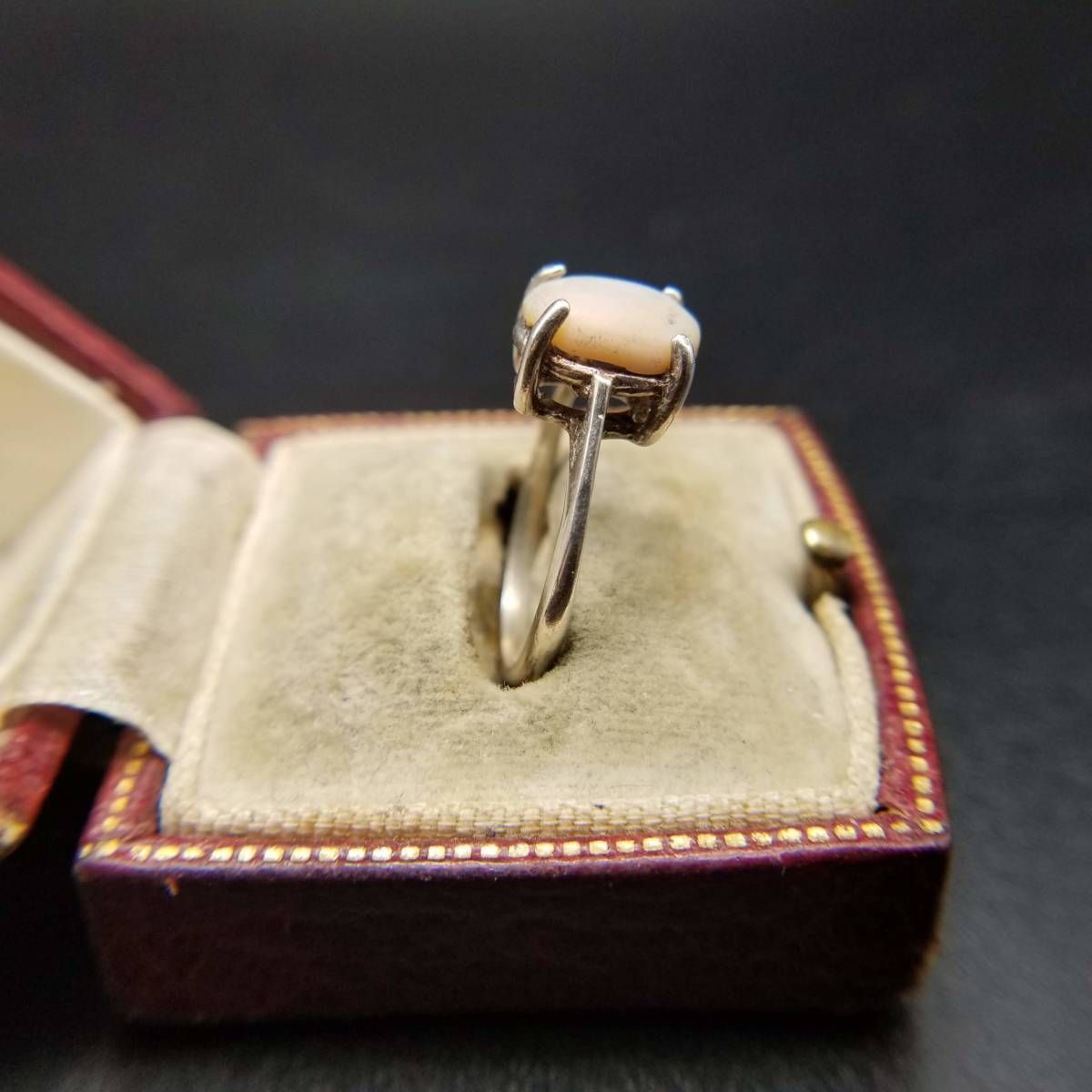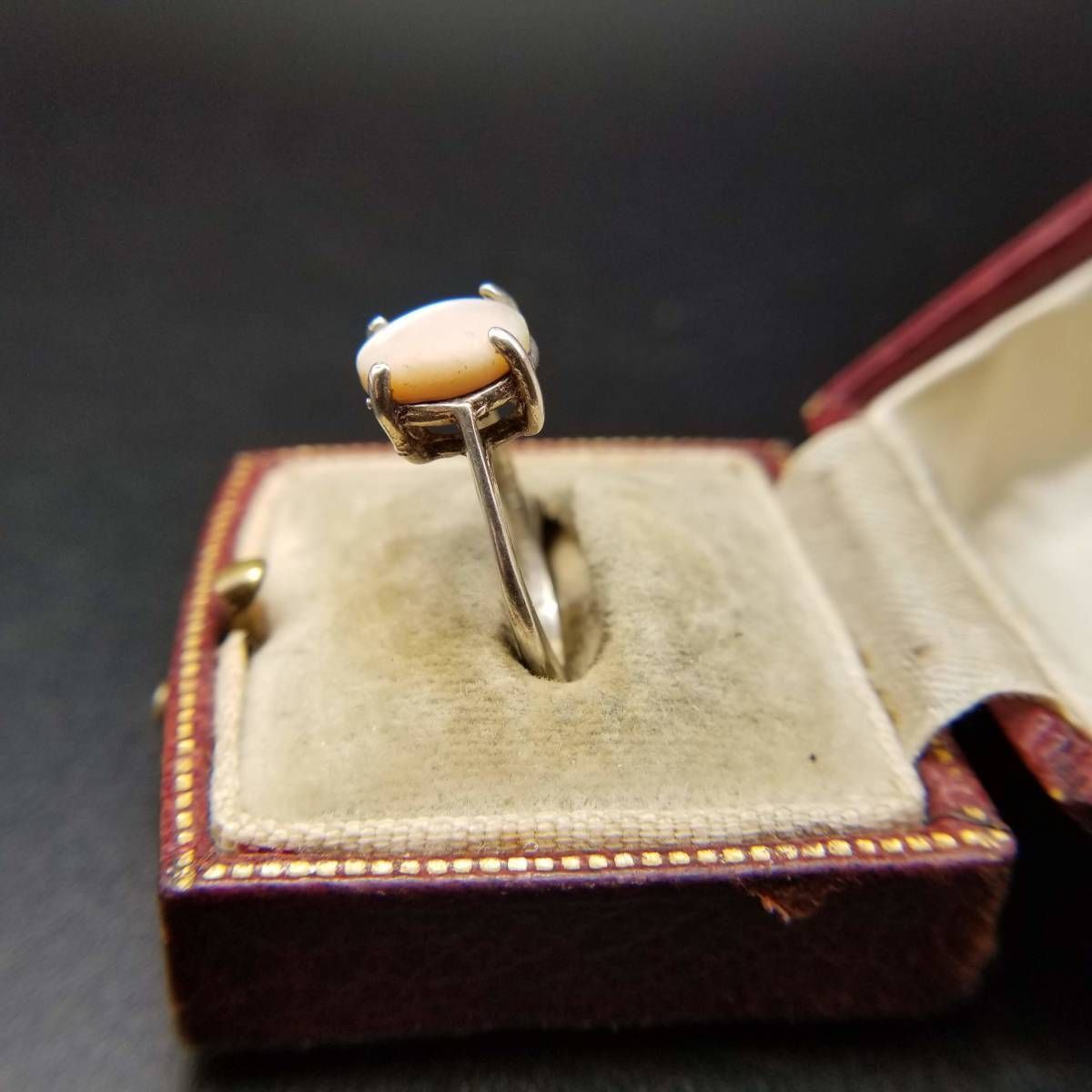 ブラジル ヴィンテージ マザーオブパール カボション 925 シルバー リング 指輪 銀 レトロエレガント ドレスリング 淡いピンク SU964