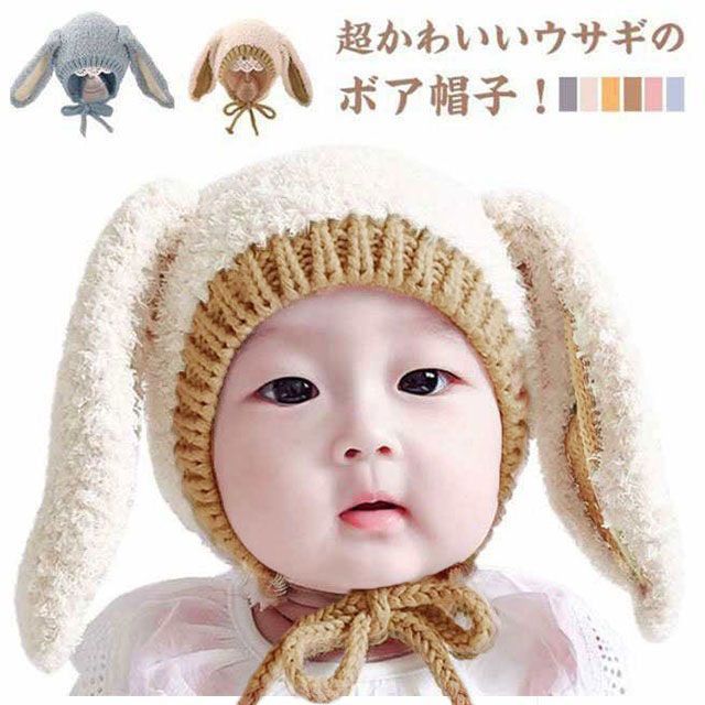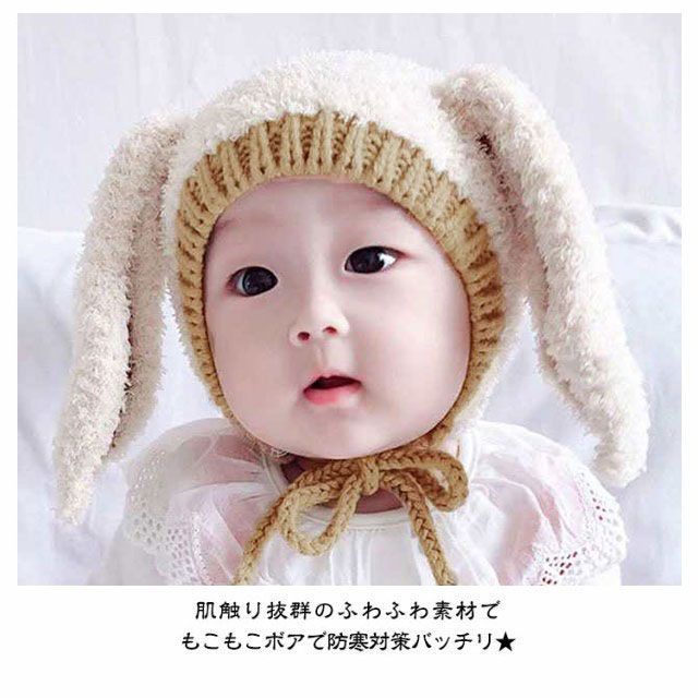 送料無料 送料無料 ニット帽子 ボア帽子 裏起毛 ベビー うさぎ 耳付き うさ耳 うさぎ耳付き 帽子 秋冬 ベビー 赤ちゃん キッズ 子供用 女の子 男の子 新生児 赤ちゃん ウサギ 子供 ベビー服 #runa2860