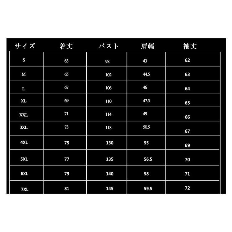 サイズ :S M L XL 2XL 3XL 4XL 5XL 6XL 7XL