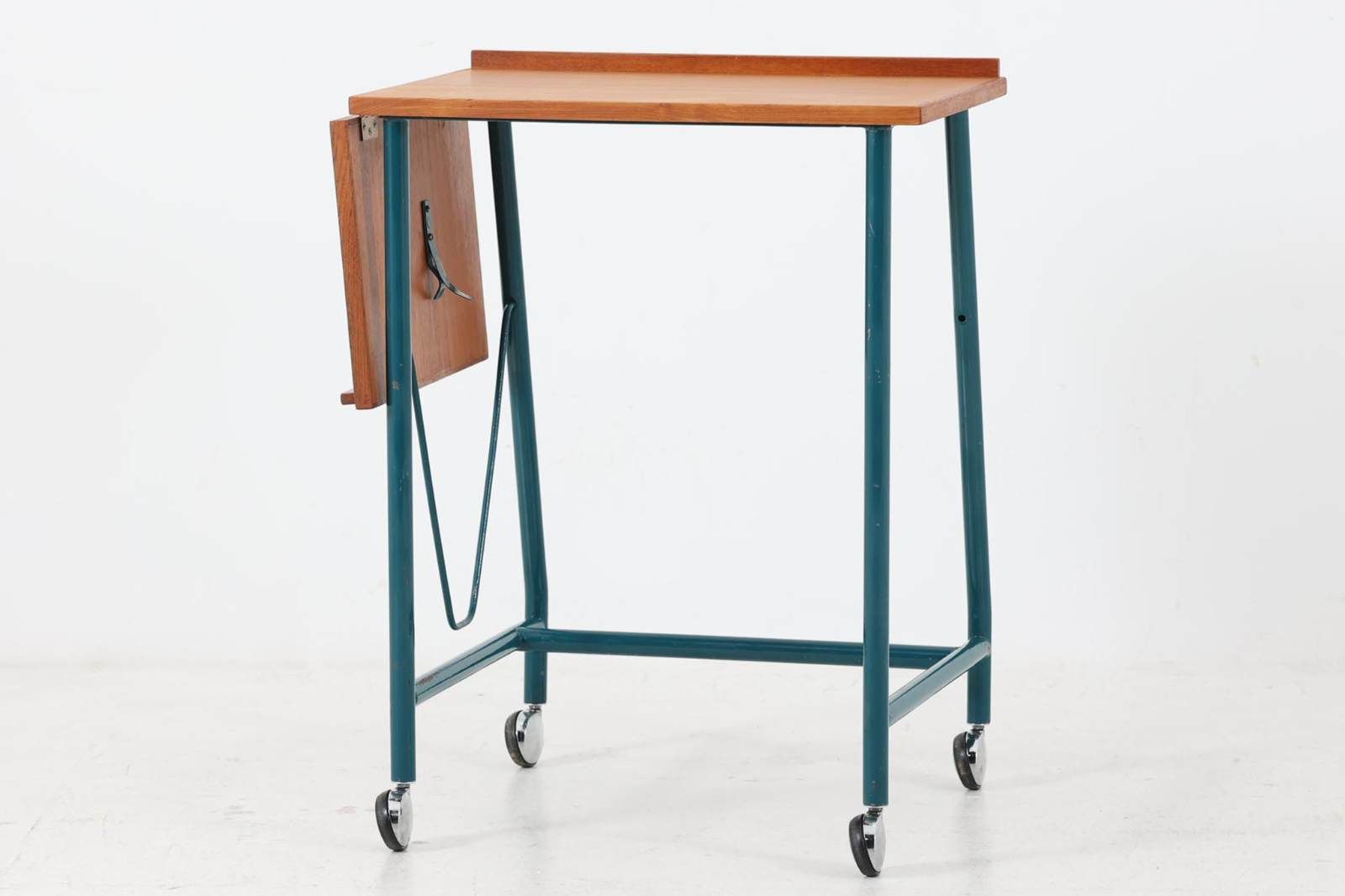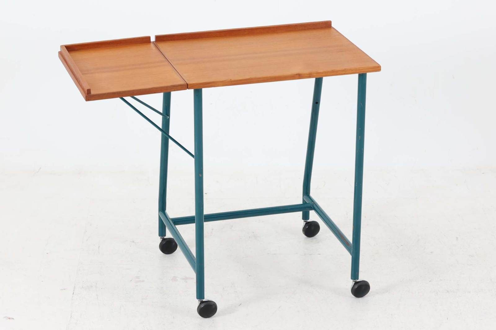 デンマークで買い付けました。天板の大きさは拡張出来、キャスターも付属していますので、使い勝手が良さそうです。