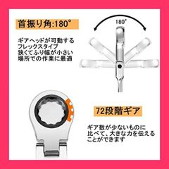 【特徴】ラチェットレンチとスパナを融合して、メガネ部分は72山ギア採用で狭い場所でも細かく振りつつ使えます。12角サーフェスでボルトやナットに入りやすくてしかも角を傷めません。ショートタイプで、取っ手が障害物と接触して回せない問題も回避できます。