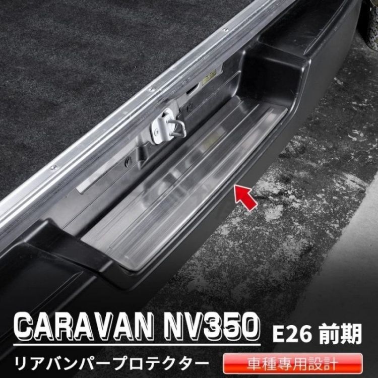 キーワード:NISSAN CARAVAN NV350 E26 リアステップカバー バンパー プロテクター ガーニッシュ ステップガード スカッフプレート 傷付き防止 保護 トリム メッキ ステンレス製 耐久性抜群 ドレスアップ カーパーツ エアロ エクステリア 外装パーツ 車用品 専用設計 キャッシュレス