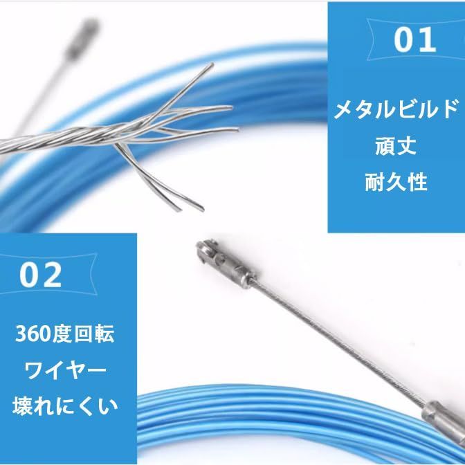 1.【パッケージ内容】10m通線 ワイヤー *1 、索引するリード線*2 2.【材質】PET樹脂+ステンレス、双線ツイストタイプの外に防水性に優れているPET樹脂に被られていて、防水性、耐久性、強靭、押しに強い、剛直性に優れている通線ワイヤーです。 3.【操作しやすい】手が届きやすく、シンプルな操作でとても便利です。 スリムなヘッドで配線もスムーズに行え、配線作業もスムーズに行えます。 4.【取扱いが容易で】簡単な作業の時にはササっともっていけるので非常に重宝します。 5.【剛直性抜群】押し込み作業中に押したわみが少なく、ツイスト形状のため点接触で摩擦によるロスを減少し、先端まで力が加わり長尺曲がりもよく通ります。ご注意:過度な折り曲げはしないで下さい。
