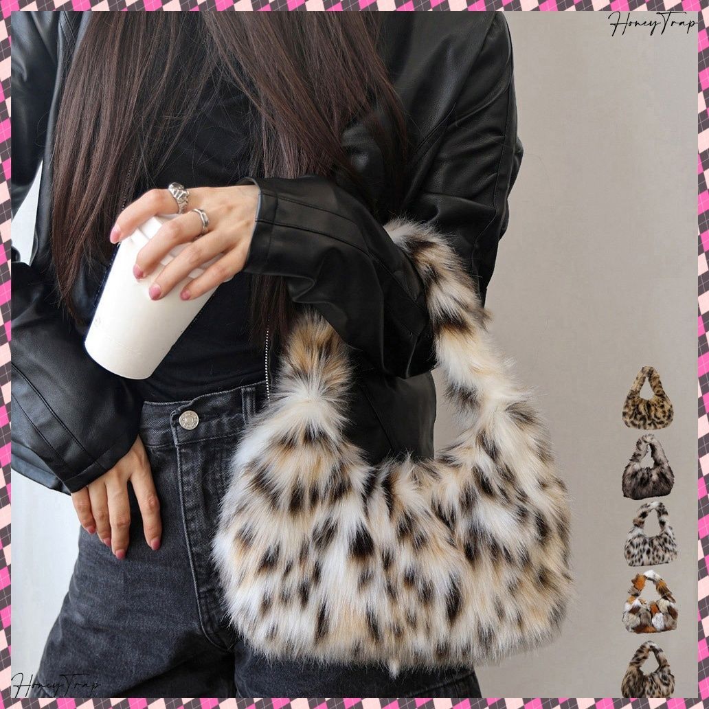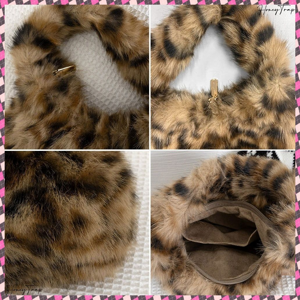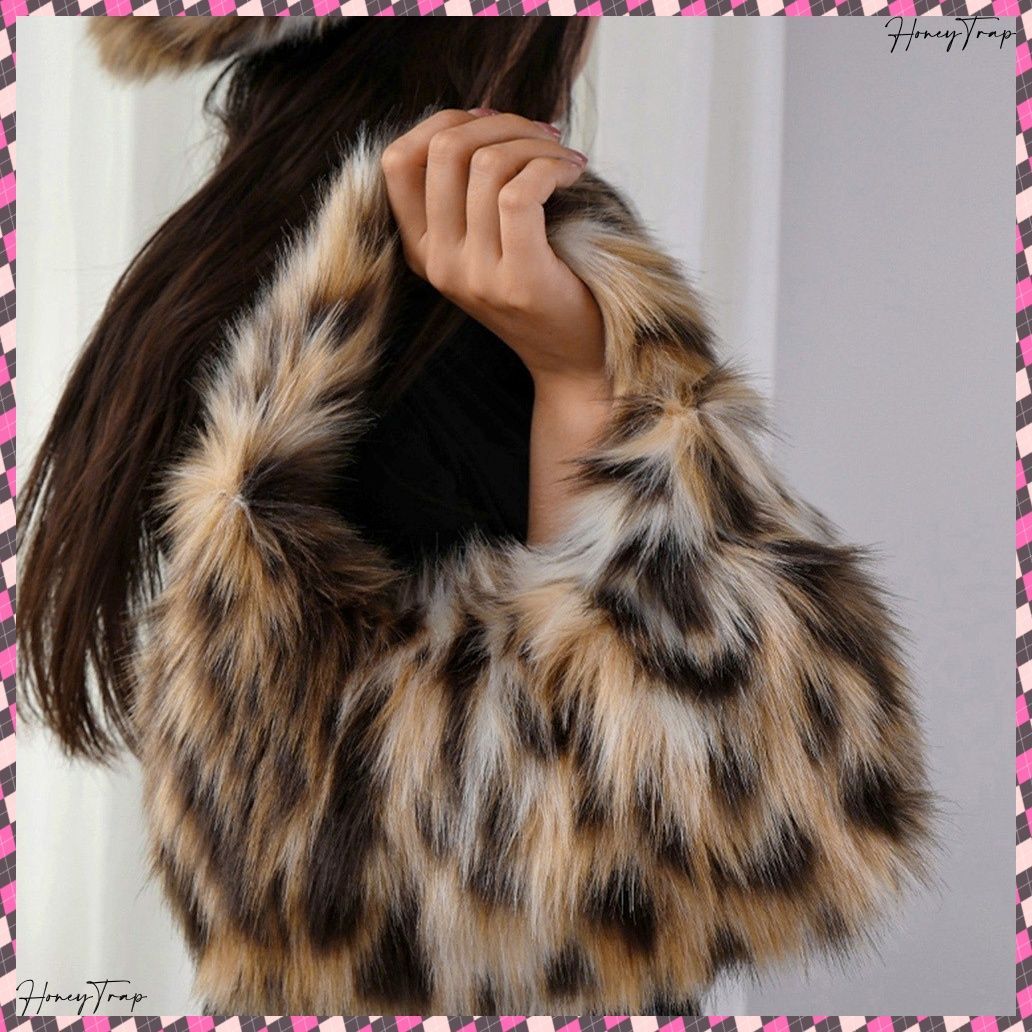 ふわふわのフェイクファー素材が存在感抜群のアニマル柄バッグ。